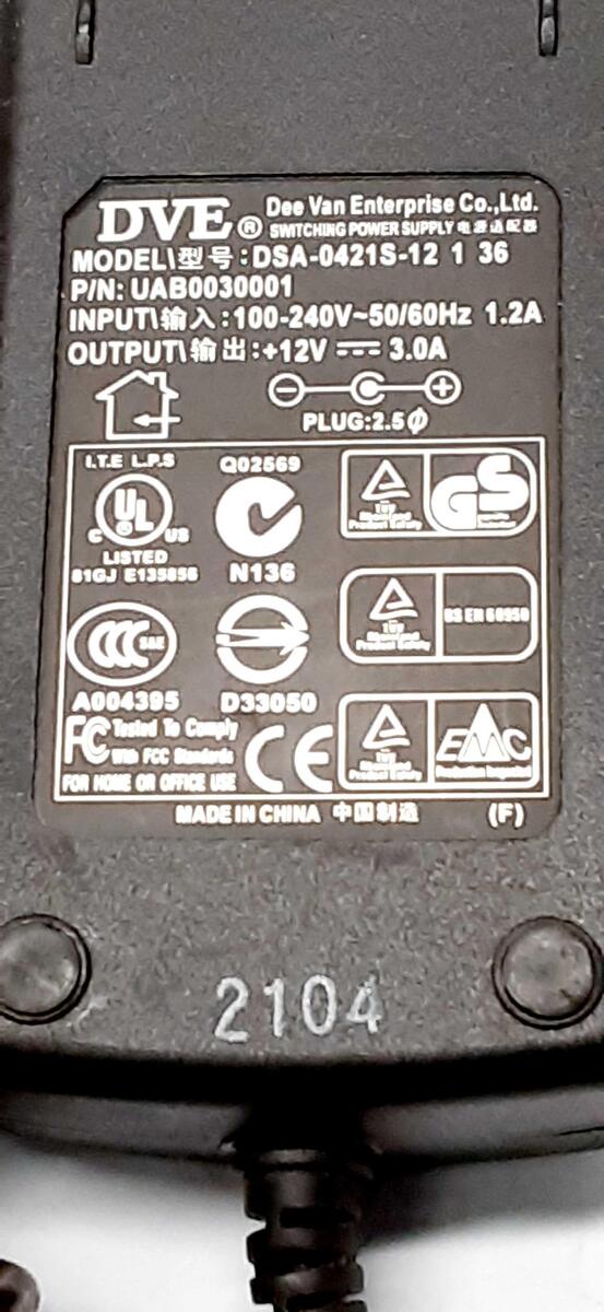 Dee Van Enterprise UAB0030001 AC Adapter Power Supply Charger 100-240V to 12V