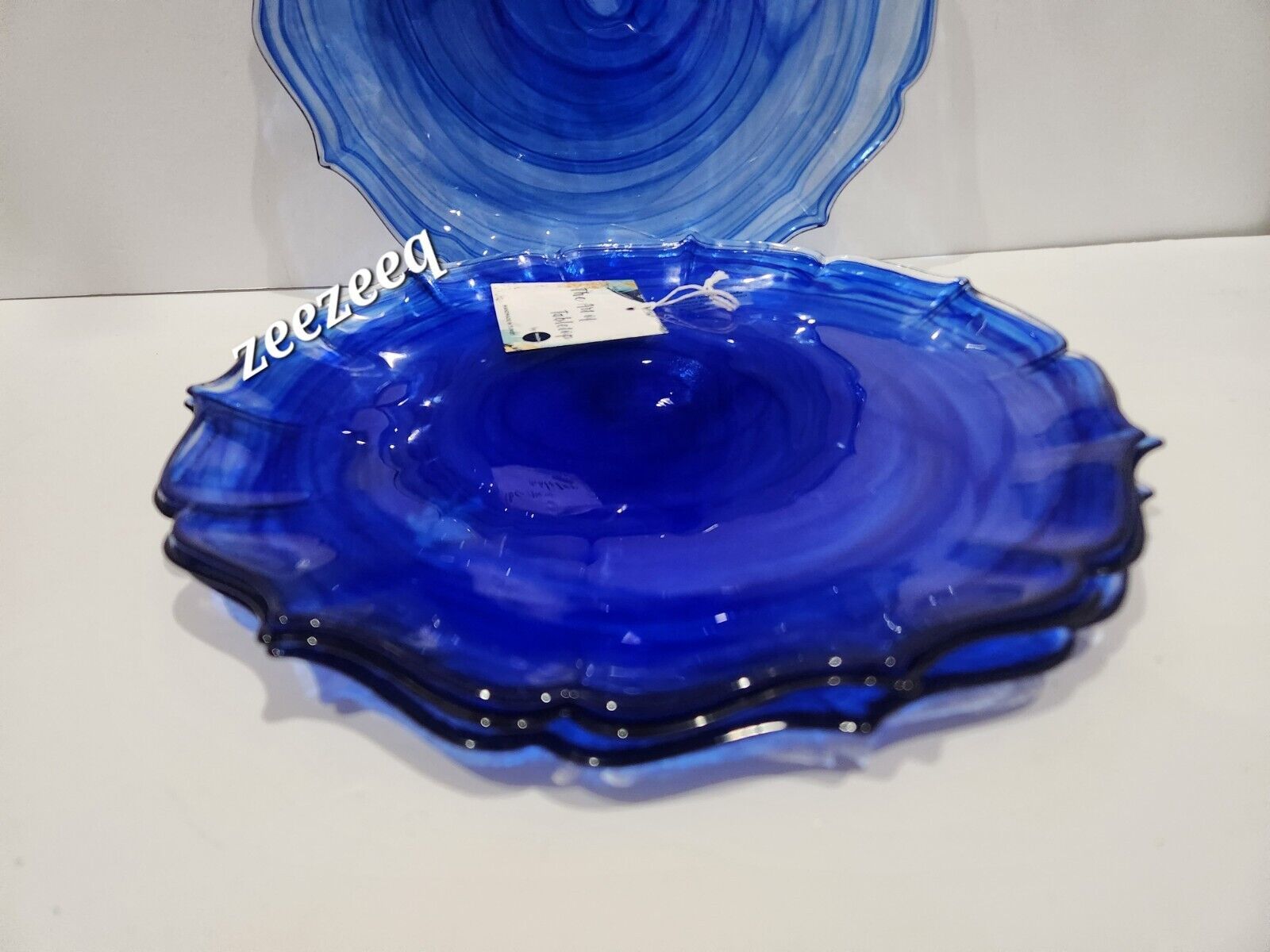 6pc The Art Of Tabletop Blue Translucent Scalloped Glass Swirl Dinner Plates