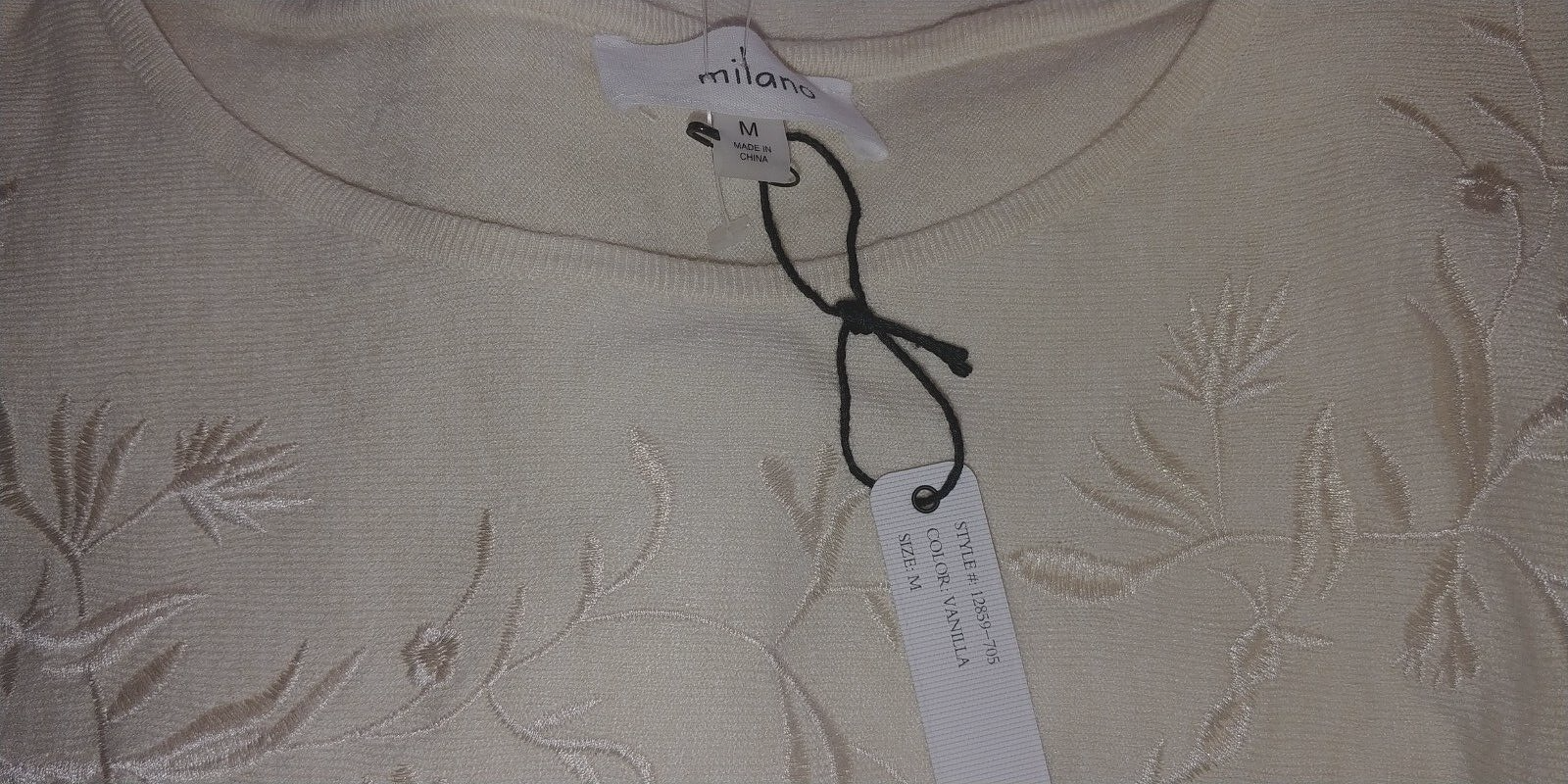 THIS IS A LOVELY LADIES MILANO IVORY COLORED RAGLAN LONG-SLEEVED PULLOVER SWEATER IN A SIZE MEDIUM. IT IS NEW, WITH TAGS ATTACHED.