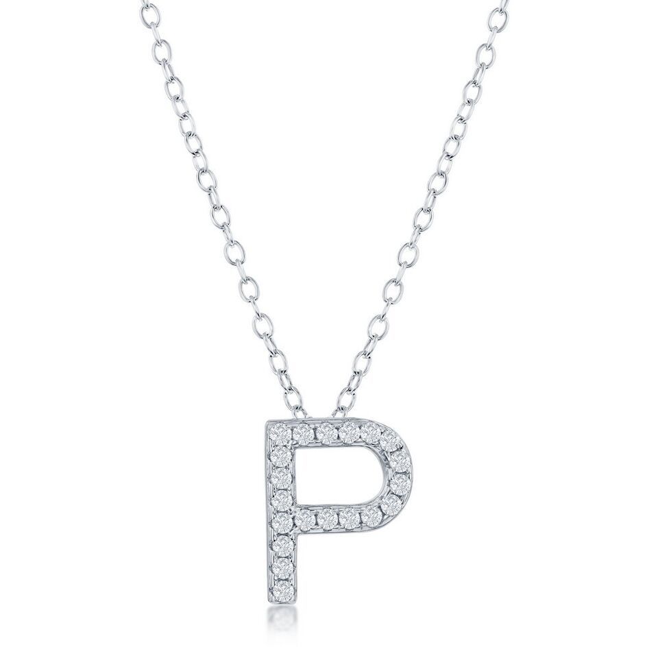 Sterling Silver Micro Pave "P" Pendant Necklace