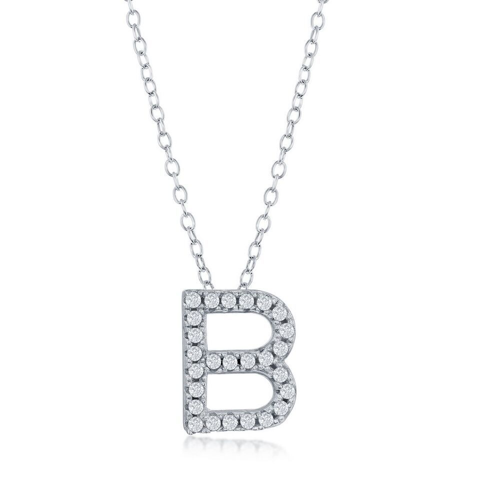 Sterling Silver Micro Pave "B" Pendant Necklace