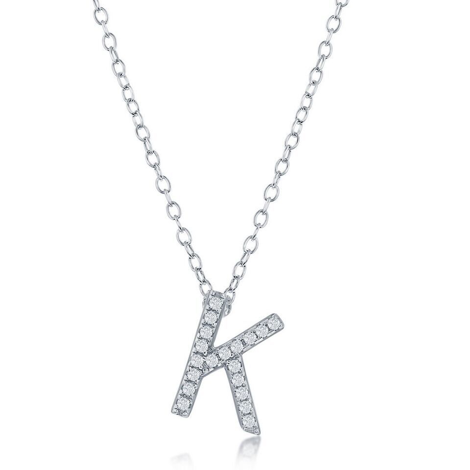 Sterling Silver Micro Pave "K" Pendant Necklace