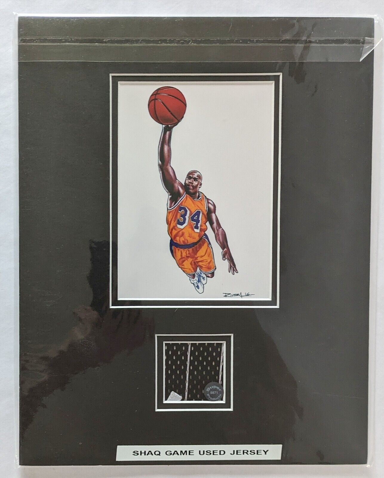 Shaq Shaquille O'Neal HOF Matted Lithograph & Game Used Jersey Relic