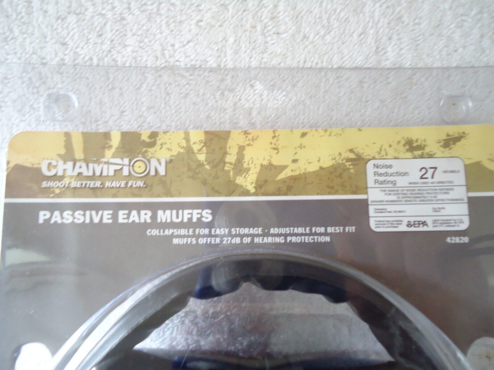 Here is a " NIP " Champion Collapsible Adjustable Passive Ear Muffs 27 Decible Noise Reduction " Great Gift Item ".This is a must for anyone who uses these or a shop for stock.If you have any concerns or questions about this item(s) please ask before bidding / purchasing because this item(s) is being SOLD AS IS.Thank You.
