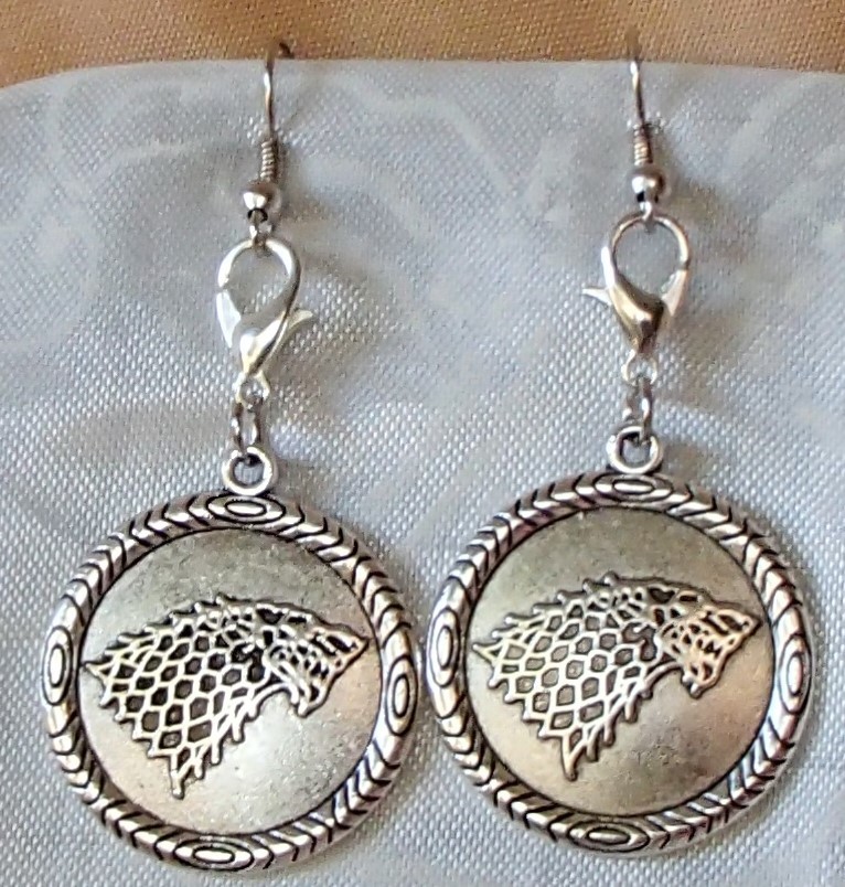 GOT House Stark Dire Wolf Winter is Coming Handmade Earrings Zip Pulls FREE SHIP