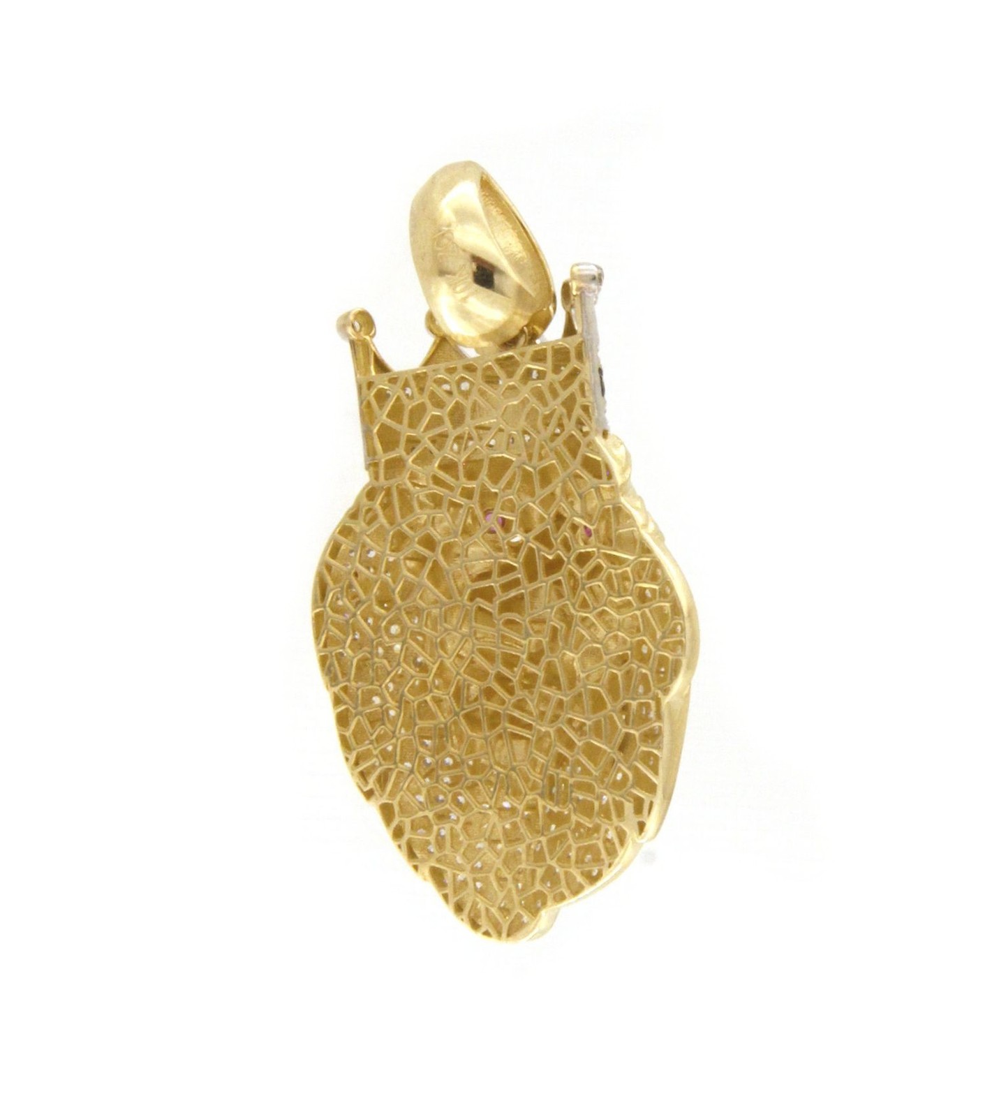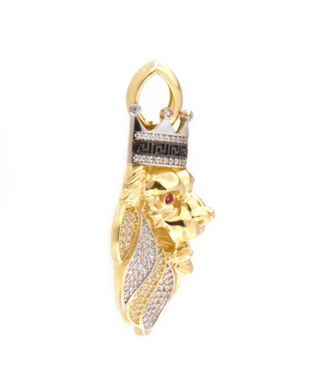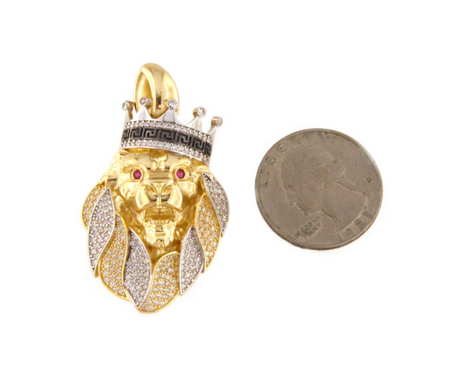 Type: CharmWeight: 5.8Karat: 10ktMetal: Yellow and White GoldGender: Men'sStyle: AnimalSize / Length: 2"Owner applied: 10KT ZCIStone 1 quantity: 250Stone 1 shape: RoundStone 1 color: ClearStone 1 weight (total): 2.50Stone 2 Quantity: 2Stone 2 Shape: RoundStone 2 Color: RedStone 2 Weight (Total): .04Condition:New (No Box)