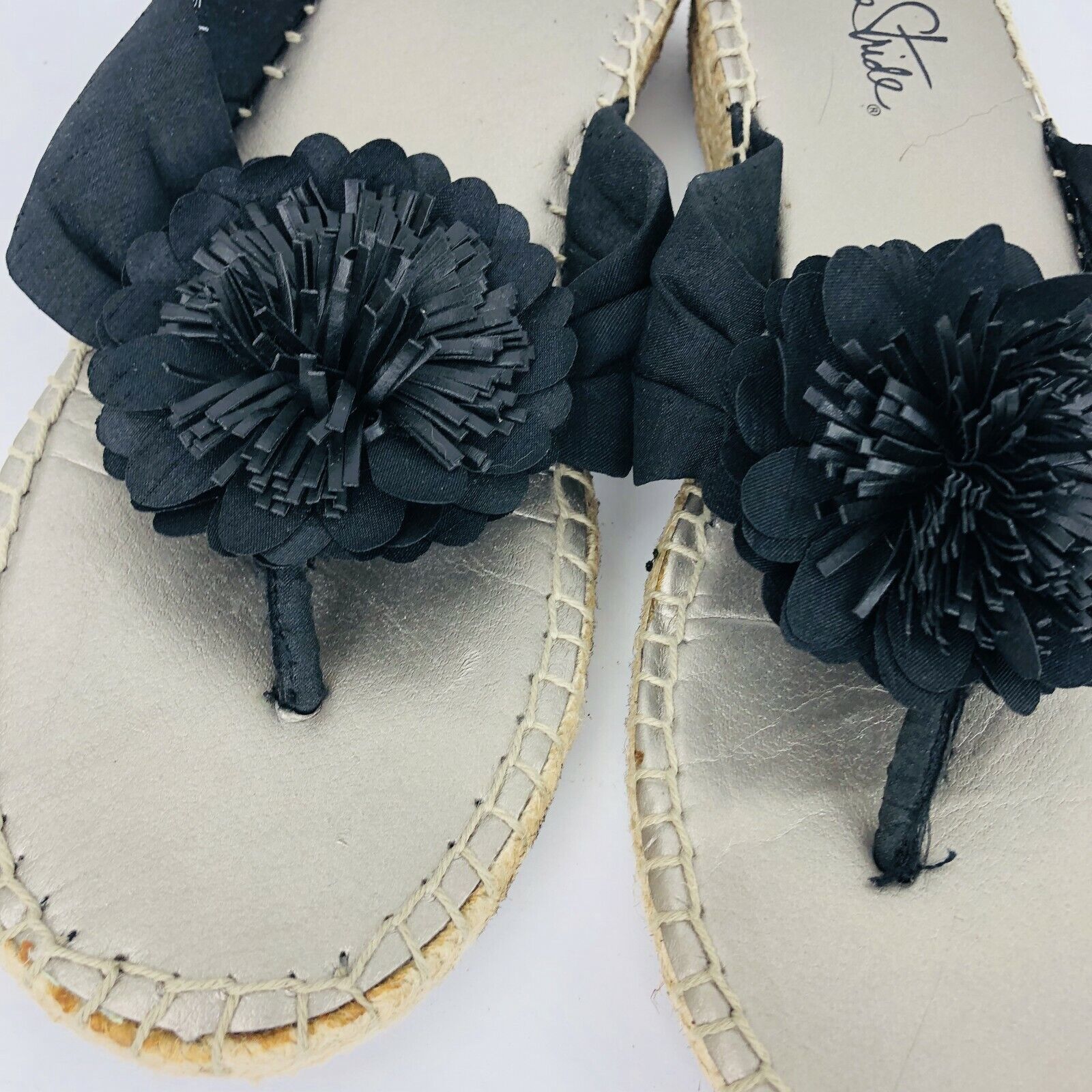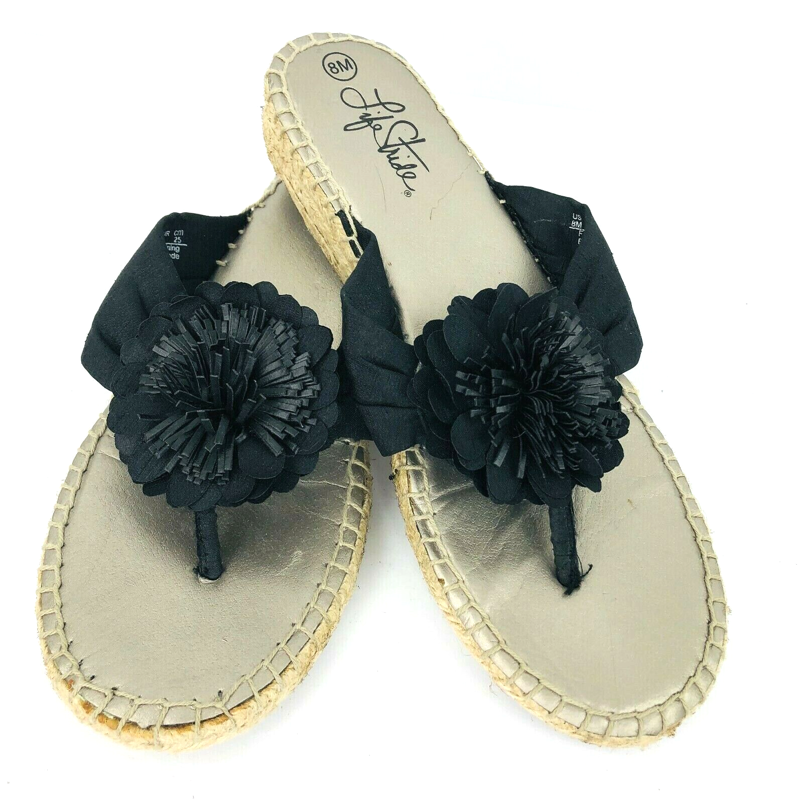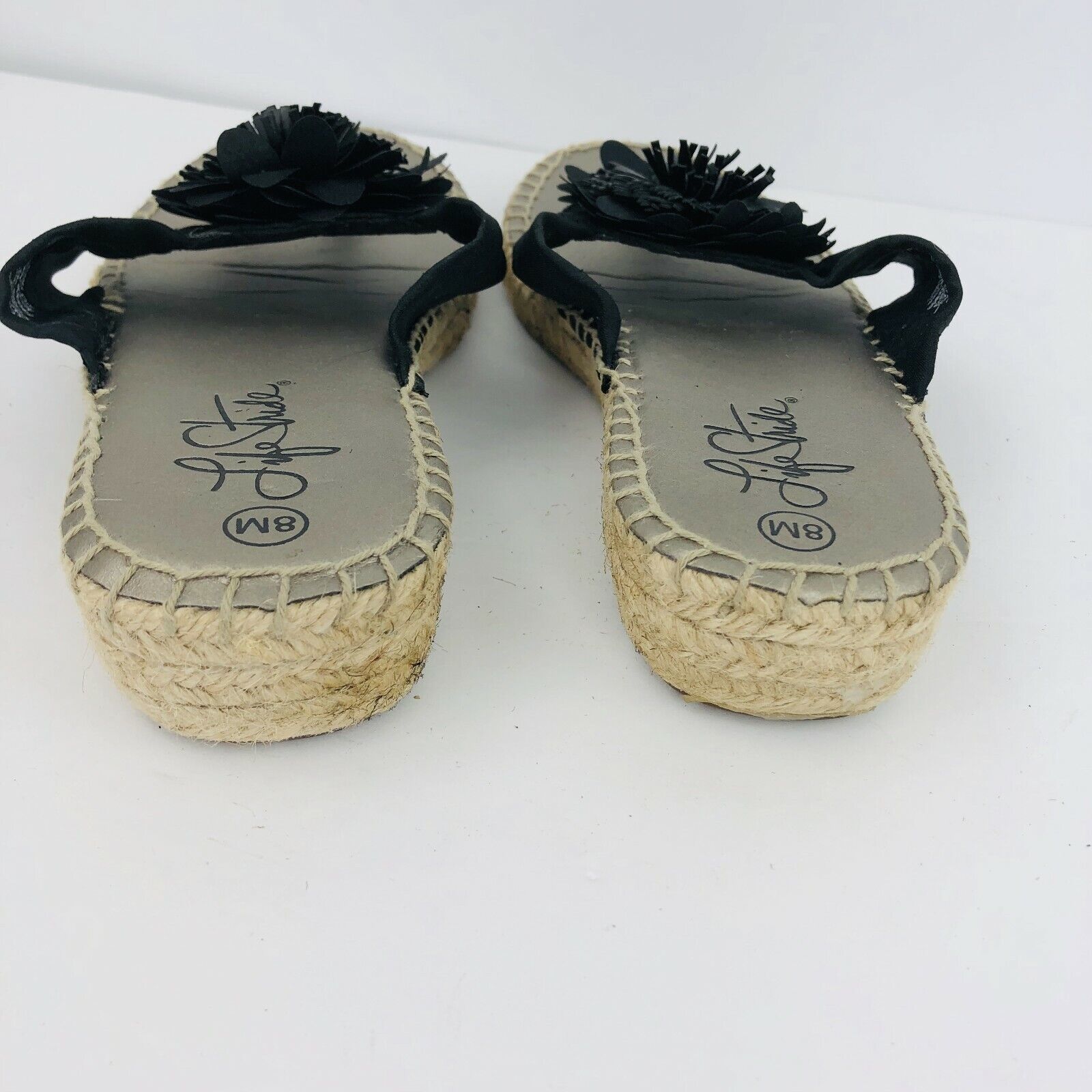 Life Stride Rio Tres Espadrille Size 8 Sandal Flip Flop Black Flower Hemp Shoe