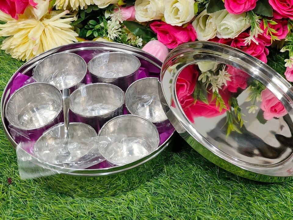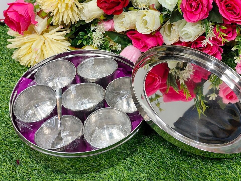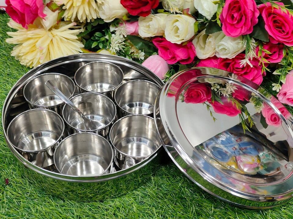 Stainless Steel masala dabba Spice Organiser Set of 7 Vati and 1 Small Spoon