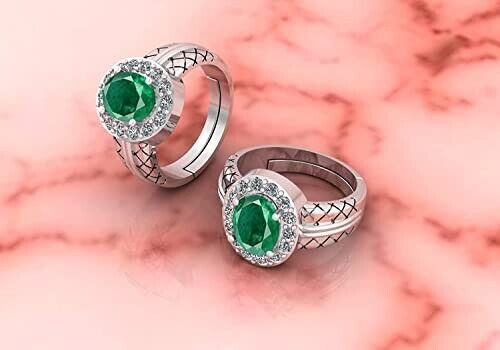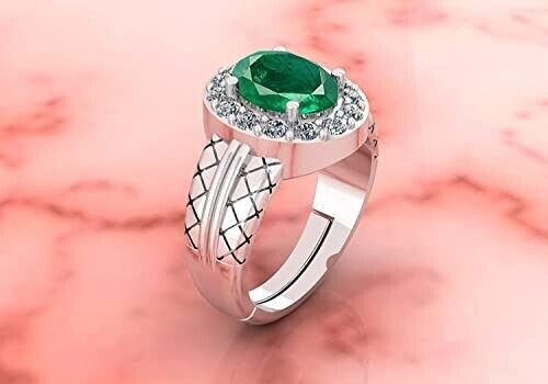 ertified Natural 6.05 Carat Zambian Emerald Panna Silver Plated Astrological Purpose Adjustable Ring for Women's and Men's 870B0BWNRHM81