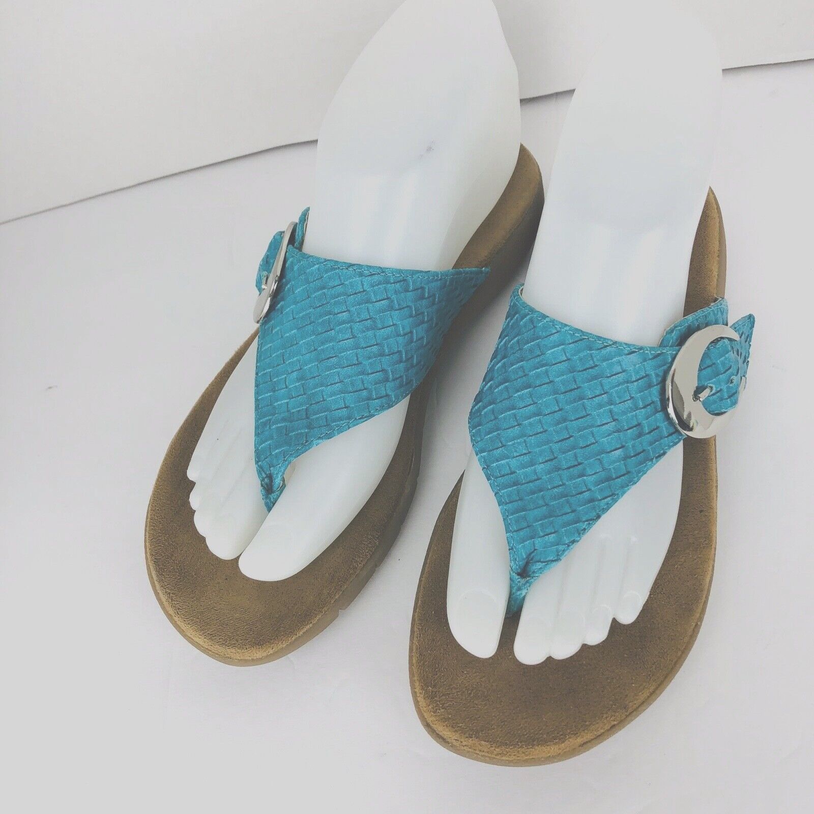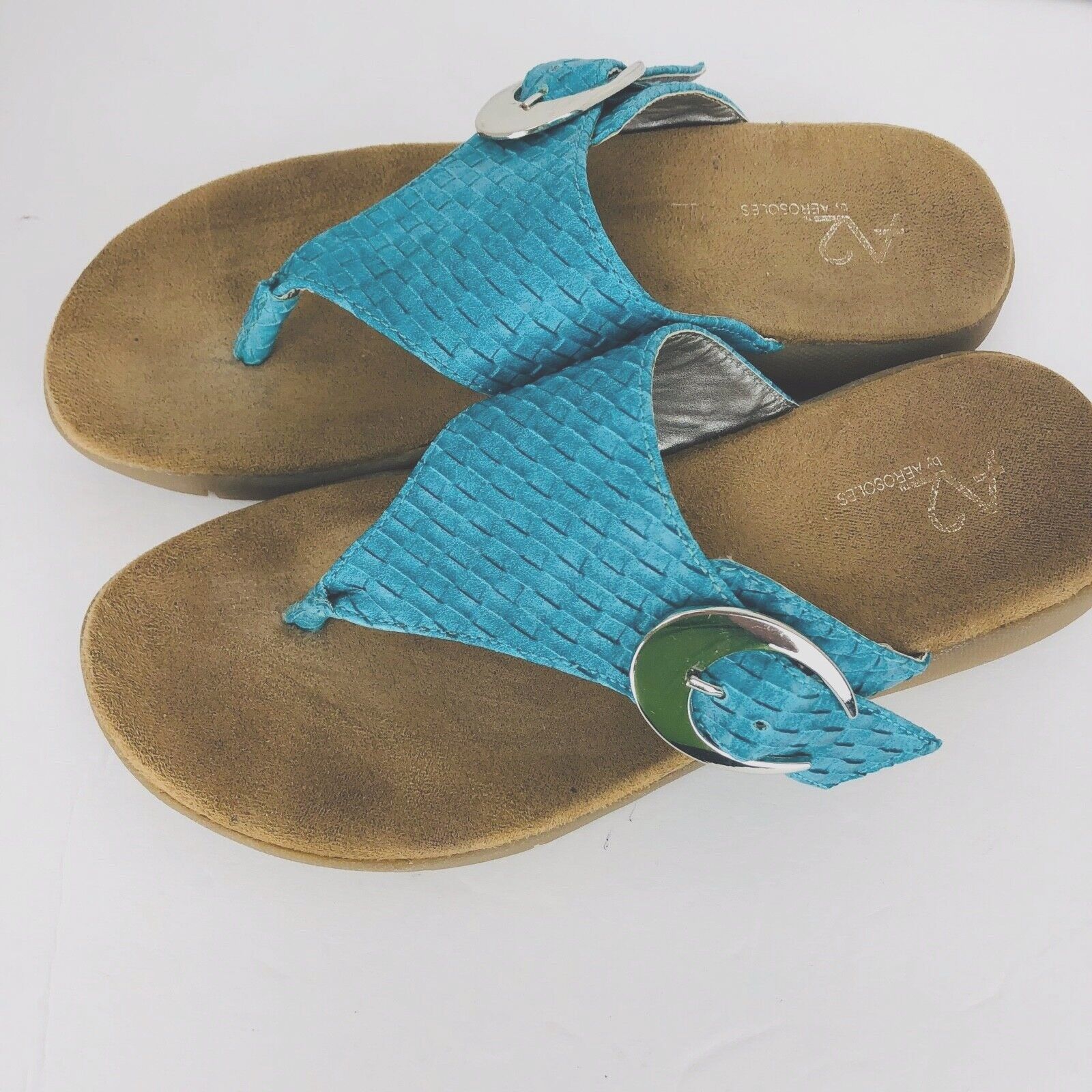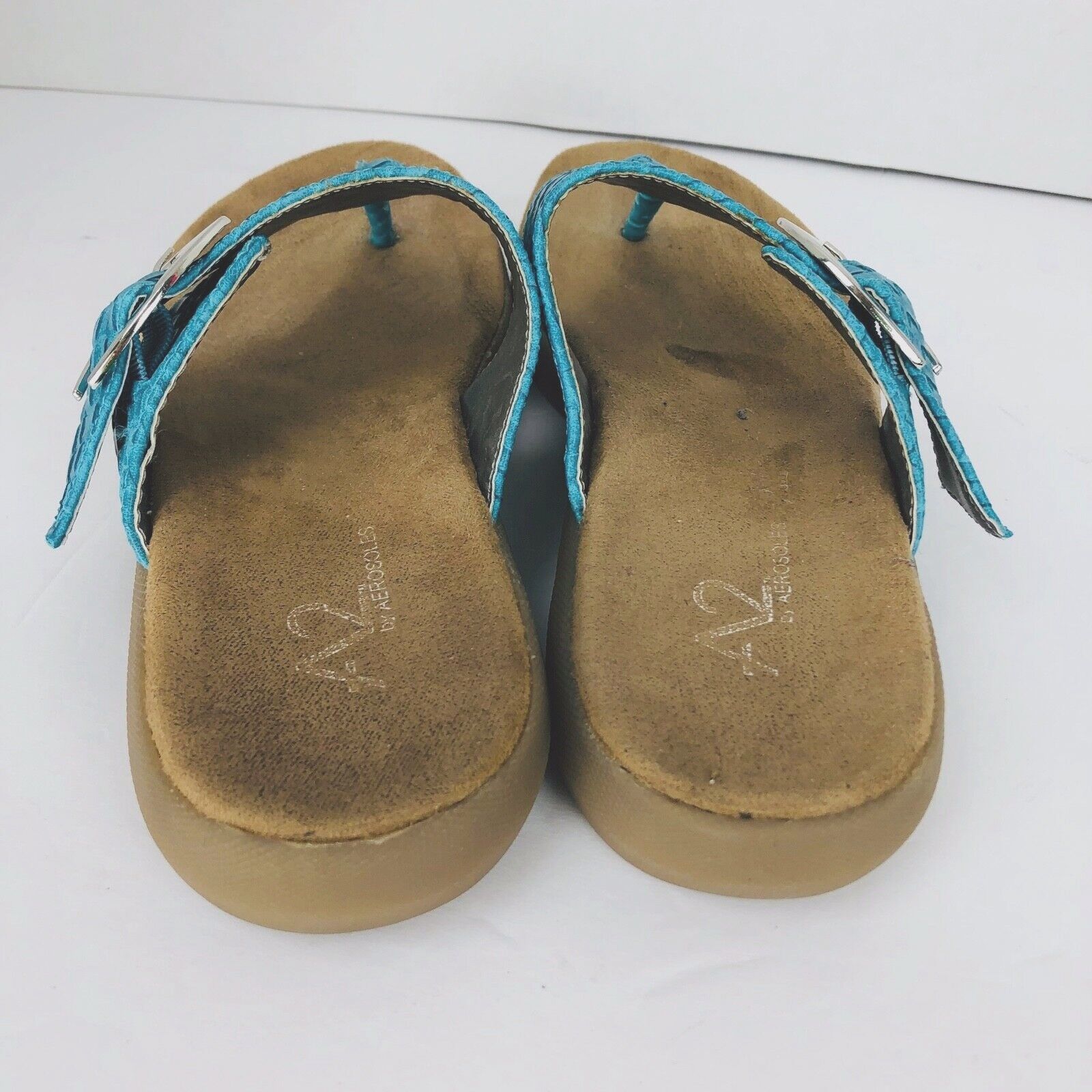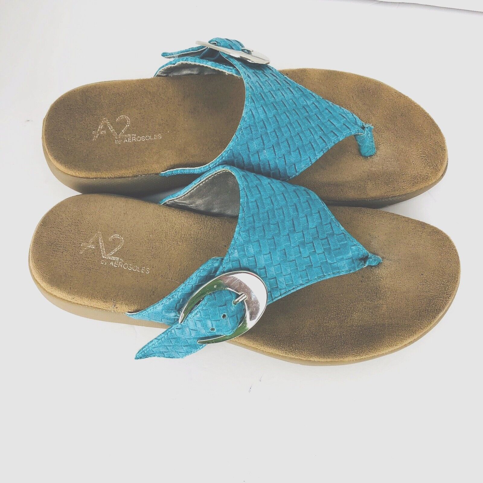 A2 by Aerosoles Wipline Flip Flop Sandals Teal Blue Turquoise Slip On Size 6.5 M