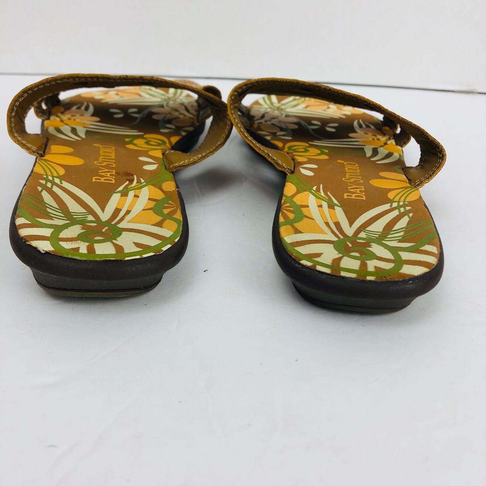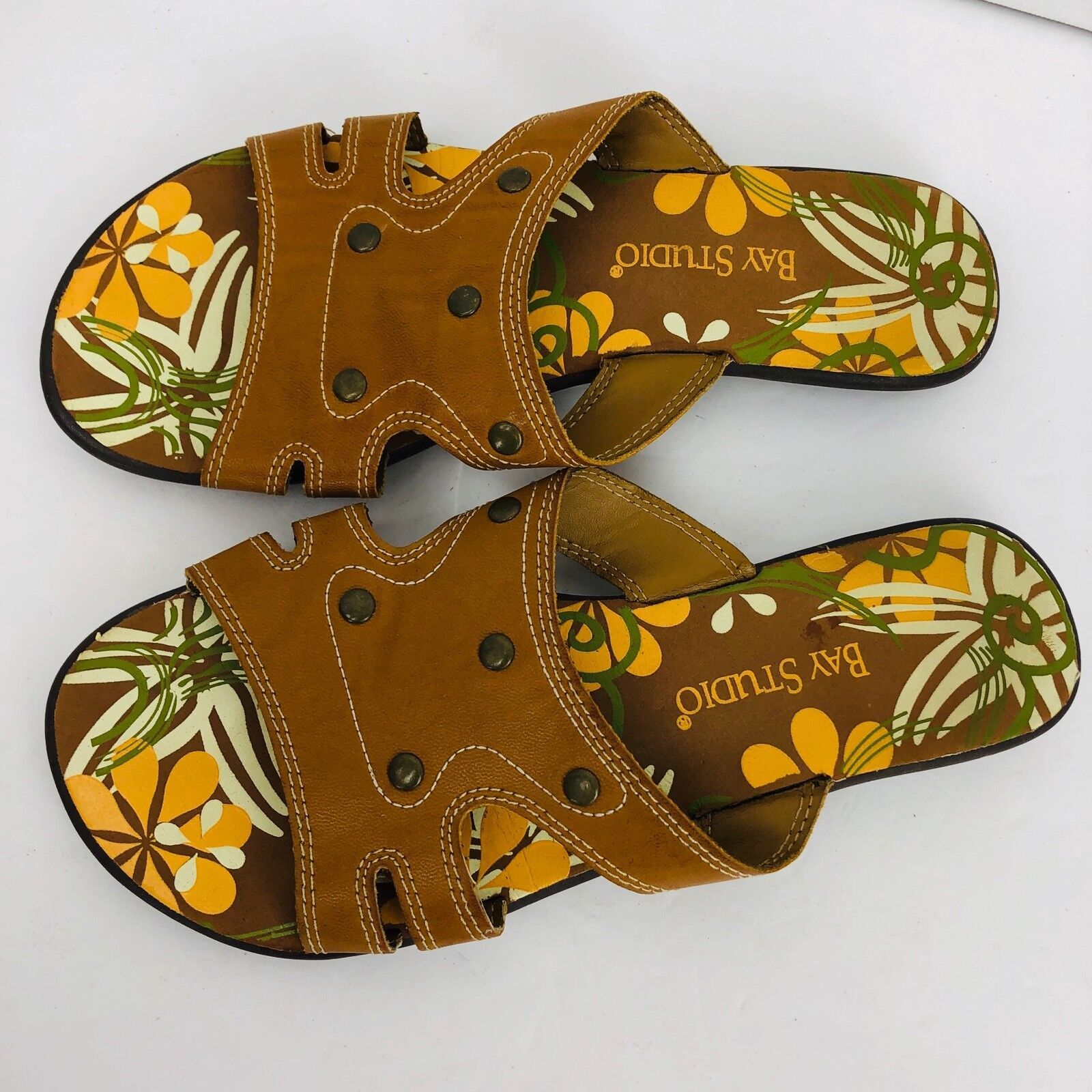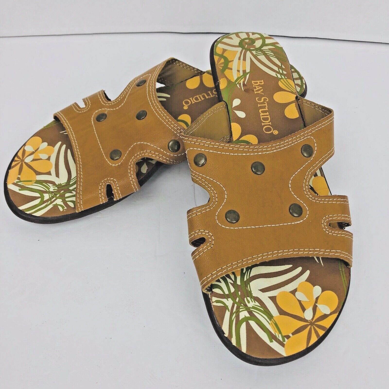 Bay Studio Tan Leather Slip On Sandals Studs Flats Slides Size 6.5 M Shoe