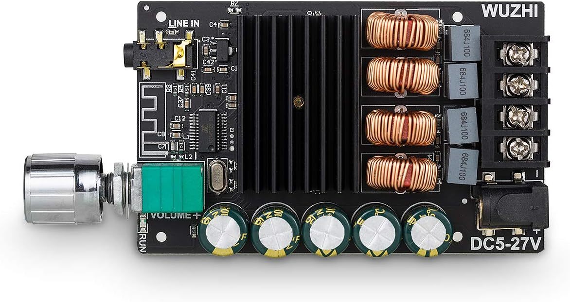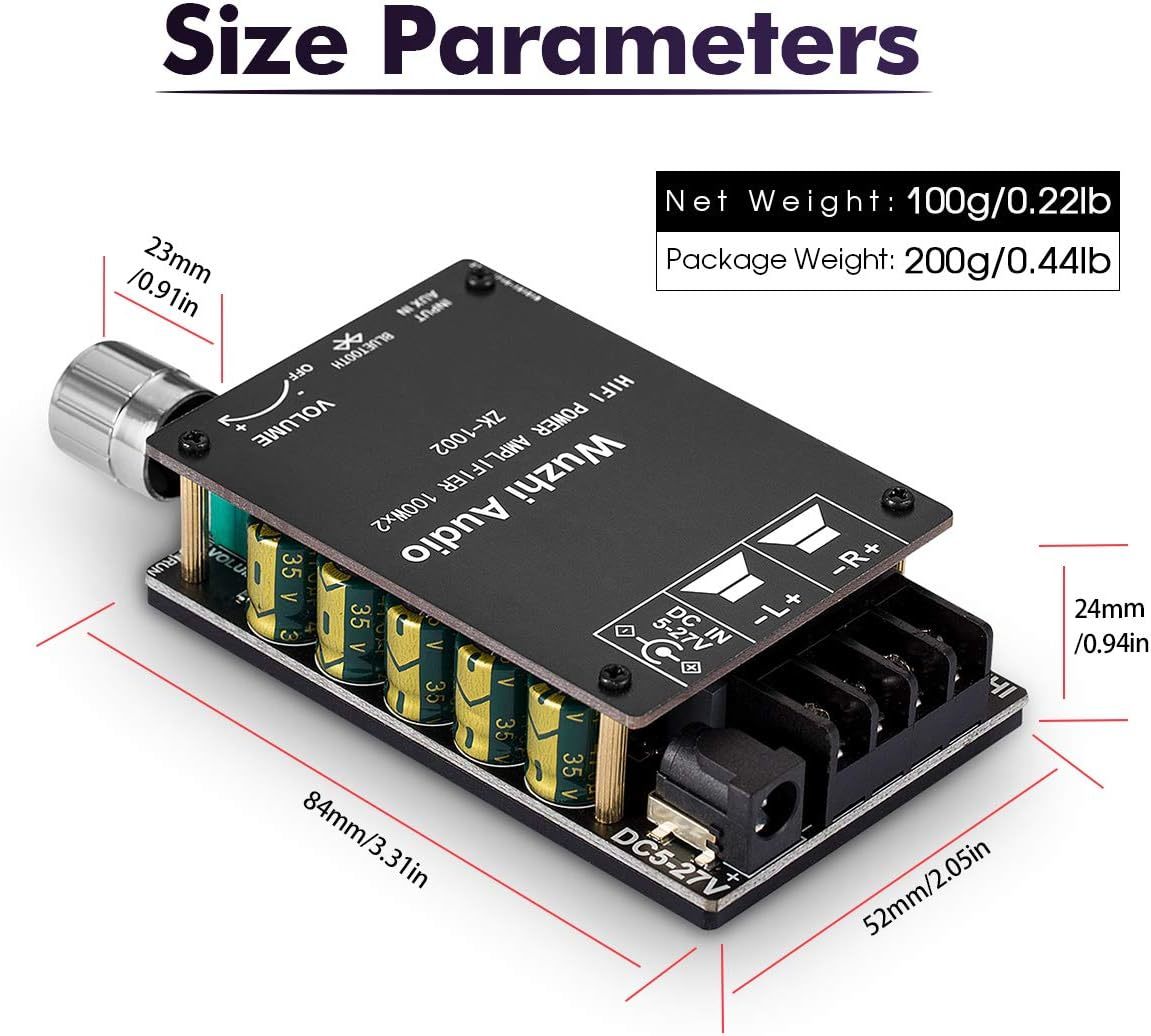 With Bluetooth 5.0 and 3.5mm AUX audio input, achieving more stable and faster transmission. Compatible with most common audio device such as iPod, Phone, MP3, computer, TV, CD players, or Streaming Media players and so on. Adopting 2PCS classical TPA3116D2 chip with AM interference suppression function, max output power can reach 100W*2, easily to drive most home desktop/bookshelf/floor-standing speakers. Adding filter and red ring inductance, the sound is clear, sweet, mellow and full, no pop sound when skipping or pausing songs, and no audible noise even at high power output. Mini size and higher playability, easy to assemble and install. With protective case, reverse connection / over-voltage / under-voltage and over-heat / short-circuit protection. Its wide working voltage DC 5-27V make it easy to used at home or in the car. Very easy and convenient to use. We include the tool you may need to install it. This board only adopts short prompt tone instead of annoying voice prompt.