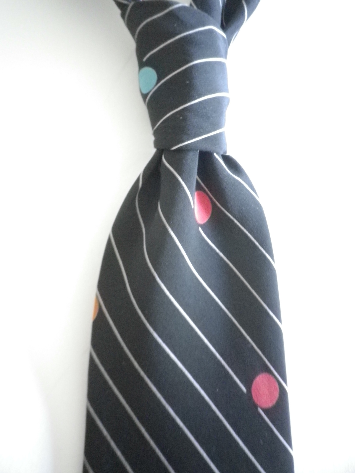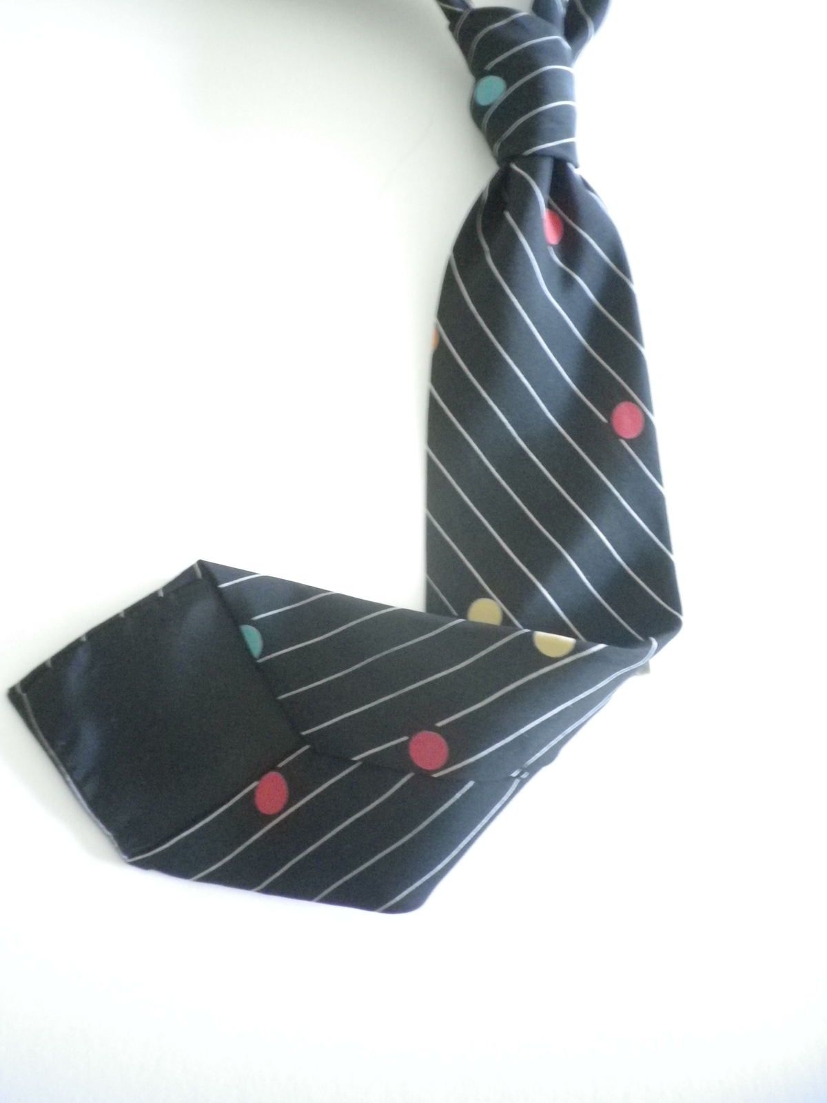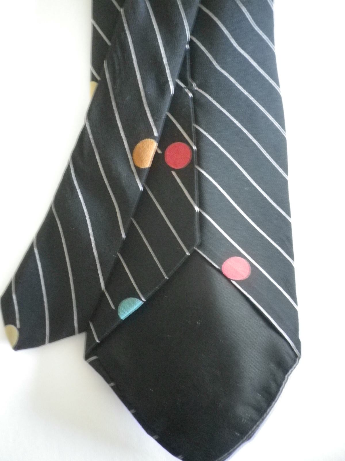 Yates & Co London black stripe/balls silk tie hand made in England free shipping