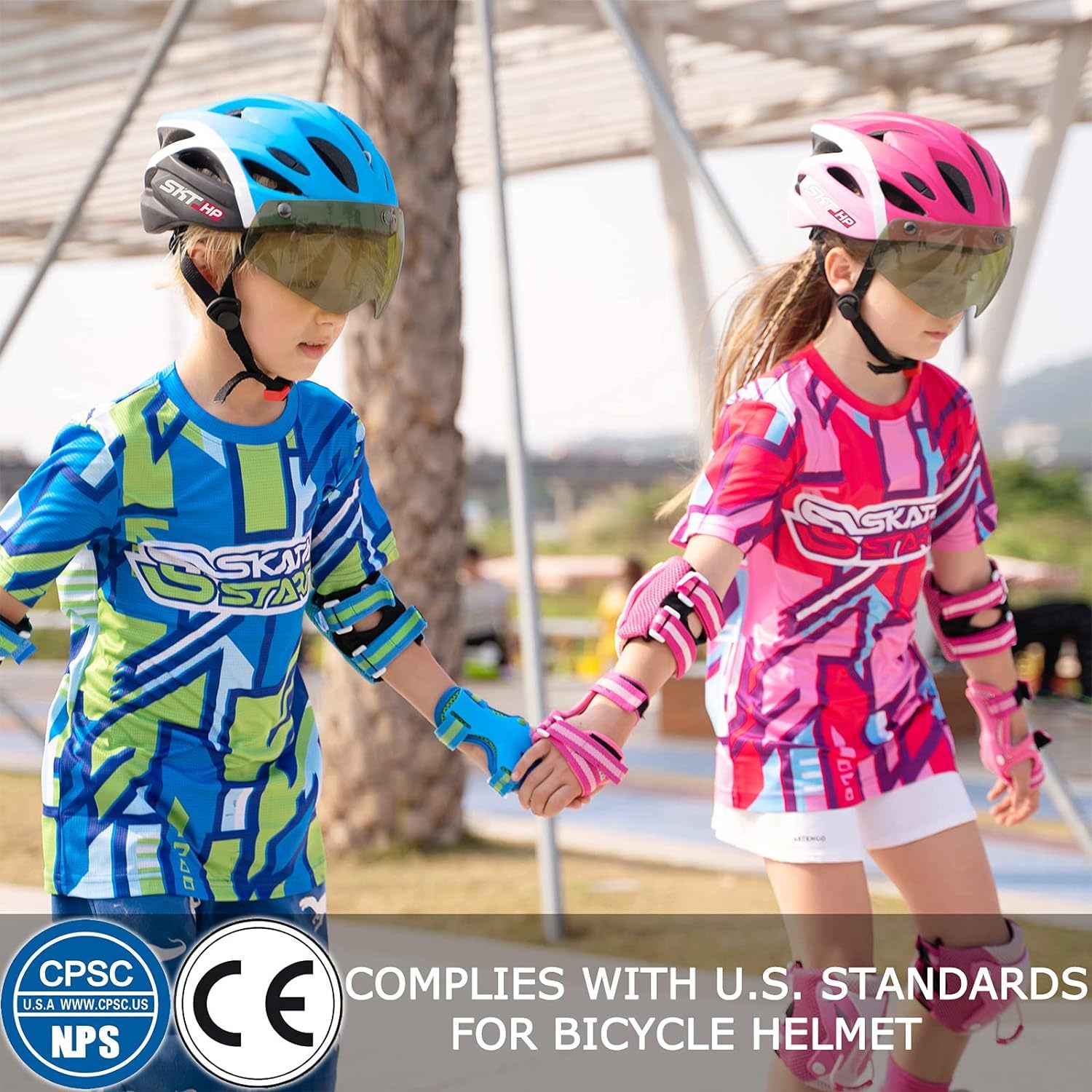 Impact Resistance - This bike helmet is specially designed for kids rider, is made of high-density EPS material and a stable PC shell in one piece. Helmet has passed double safety certified. Detachable Magnetic Goggles - Equipped with magnetic goggles for protecting your face from sun, wind and sand. UV400 protection effectively blocks UV rays. helmet with 3 strong magnet, make the goggles shield can be flipped up or down. Size Adjustable System - Adjustable bike helmet fit system gives the perfect fit, Adjustable side straps to fine tune fit and comfort. (S - Suitable for 3-8 Years old kids - Helmet circumference 19.2-21.3inch/49-54cm) helmet suitable for cycling, roller skating, scooter, BMX and multi-sports. Lightweight Ventilation -This helmet is made of lightweight material, weighing only 0.56lb. 18 integrated vents for perfect air circulation, keep head cool and comfortable. with moisture-wicking inner sponge lining, the lining can unpick to wash. Satisfied Warranty - If our helmets have any quality issue within 12 months, please contact us, we will make response in 24 hours and act to refund/exchange. We live by one simple belief: keep the safe, keep the moving. 100% Satisfied guarantee.