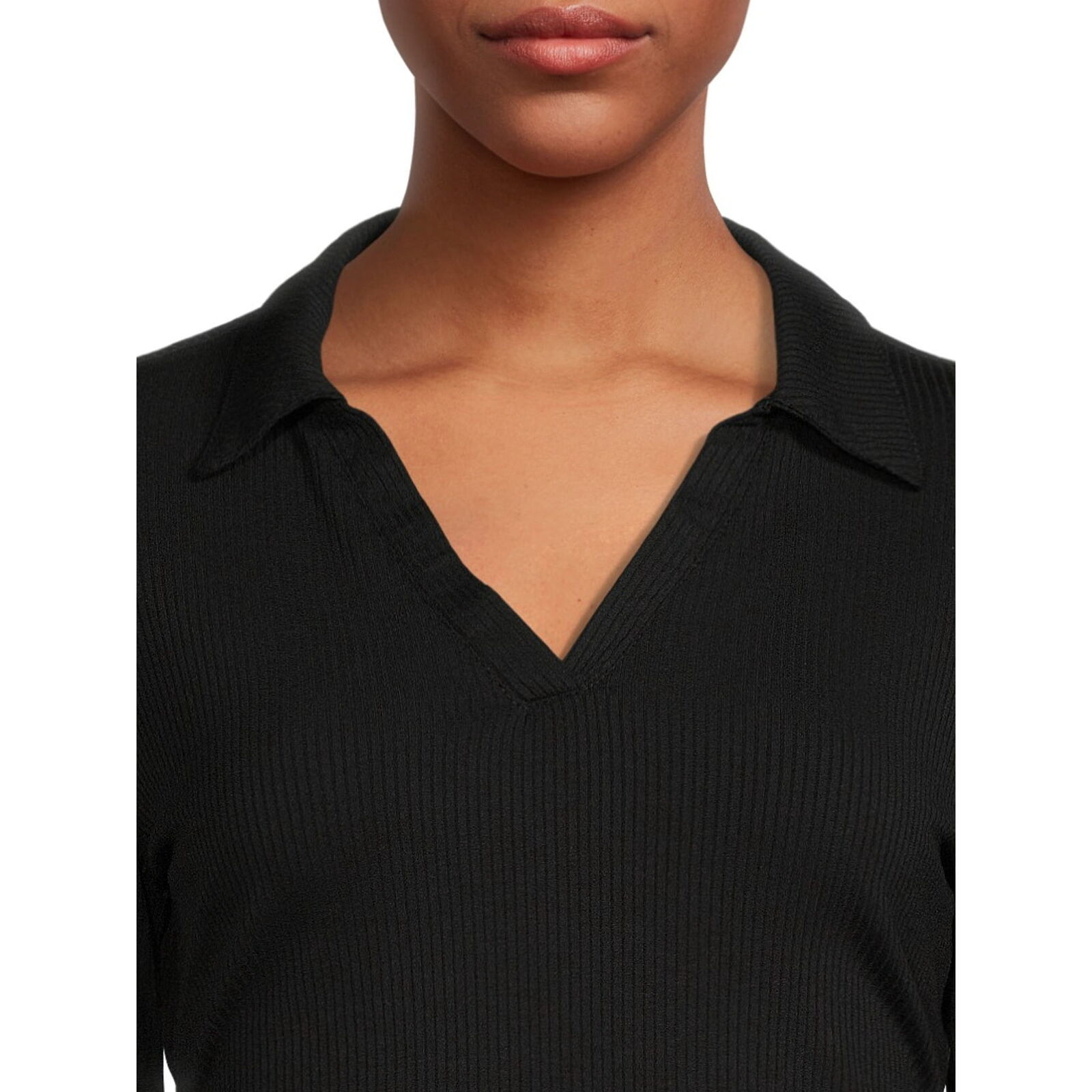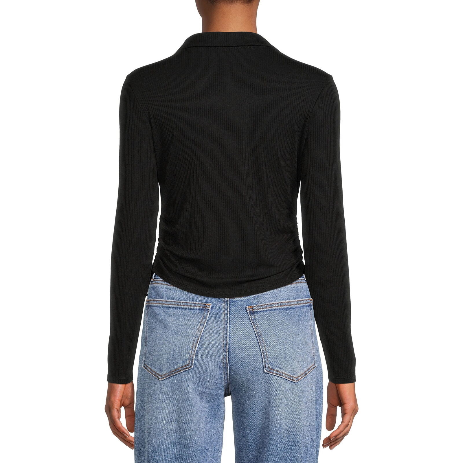 No Boundaries Juniors Ruched Collar Knit Polo Shirt Black Soot M (7-9)