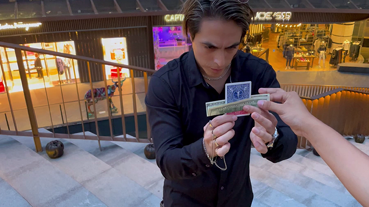 Not only does he pierce a bill with a card, but the card changes color in the blink of an eye. First, a part will change color and then be changed completely. The bill is not damaged and can be borrowed by the audience.