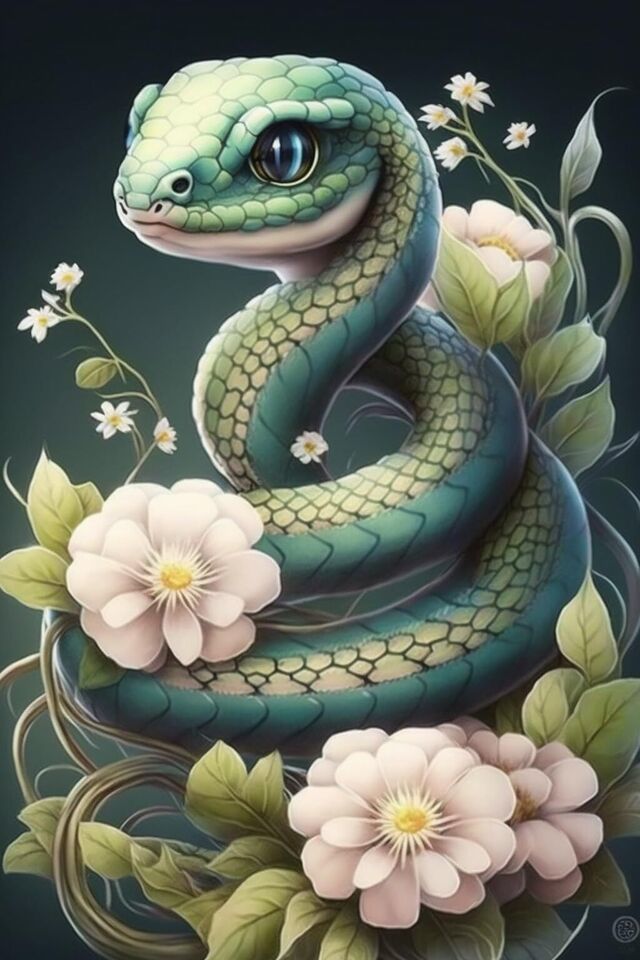 Green Snake Flower Field DIY Diamond Painting Kit - Perfect Stress Reliever and