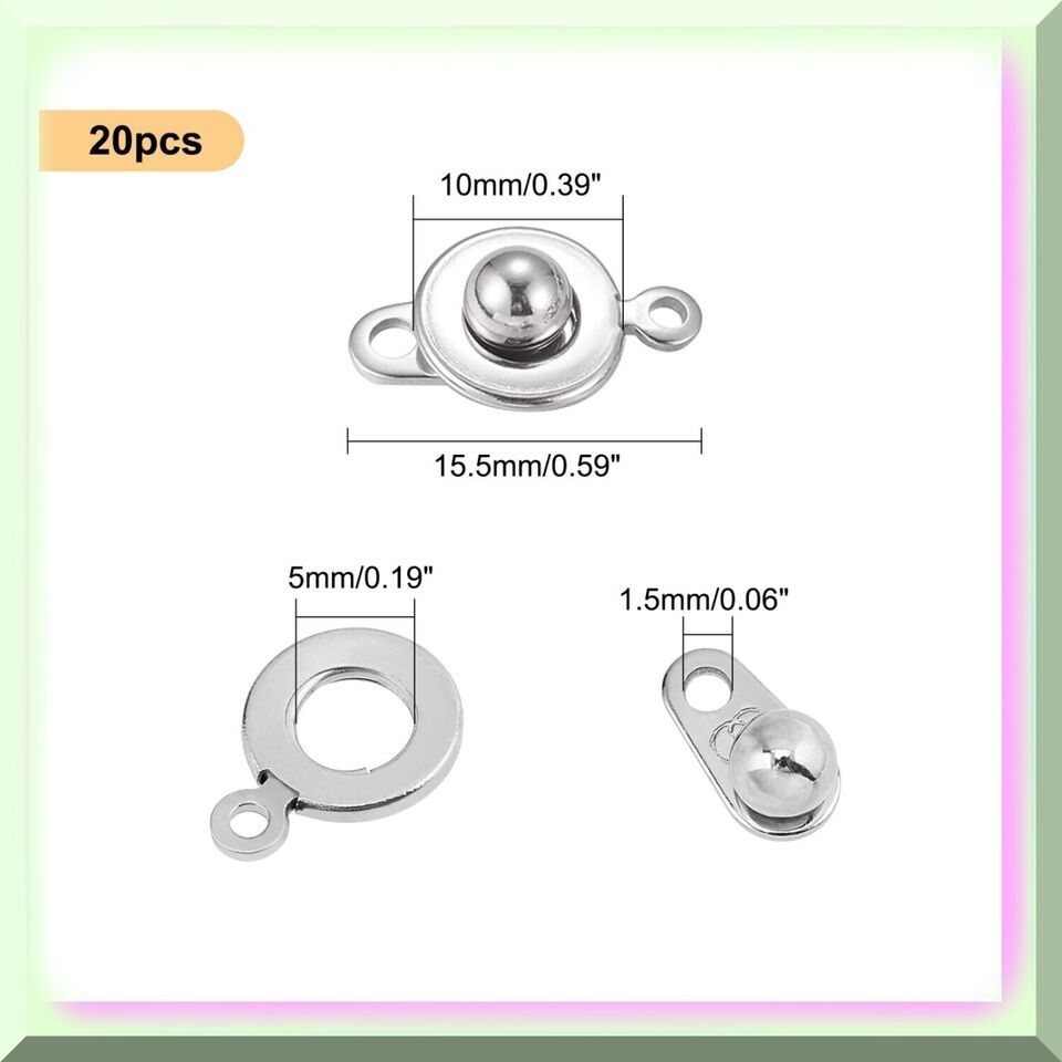 20pcs High-Quality Stainless Steel Snap Clasps - Ball Socket Fastener for DIY Ne