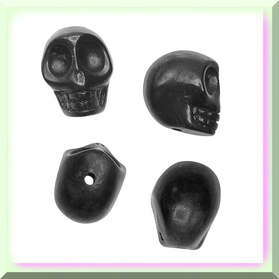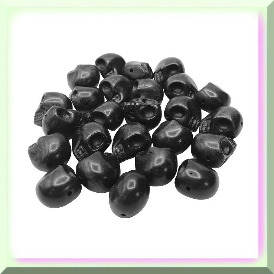 25 PCs 14mm Black Howlite Carved Skull Beads and similar items