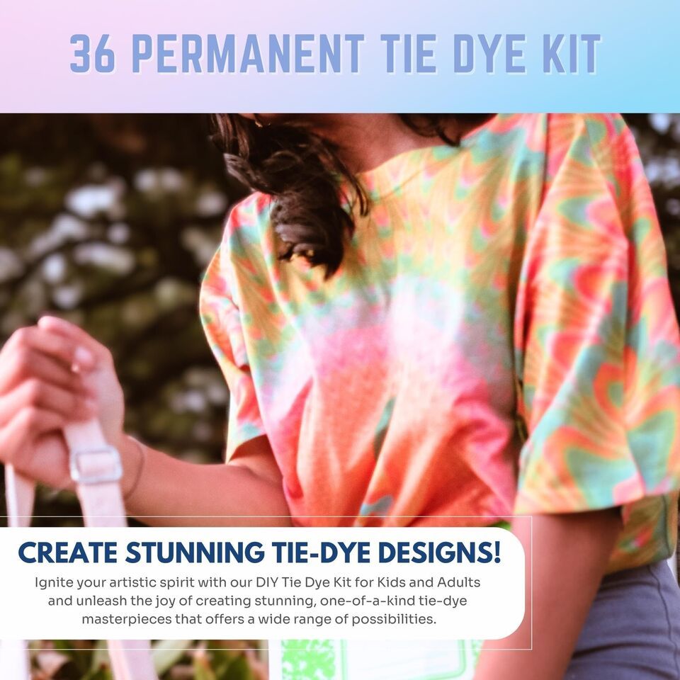 1. UNLEASH YOUR INNER ARTIST: Dive into a kaleidoscope of colors and patterns with our mesmerizing tie-dye kits, designed to ignite your creative spirit and bring out the artist within.