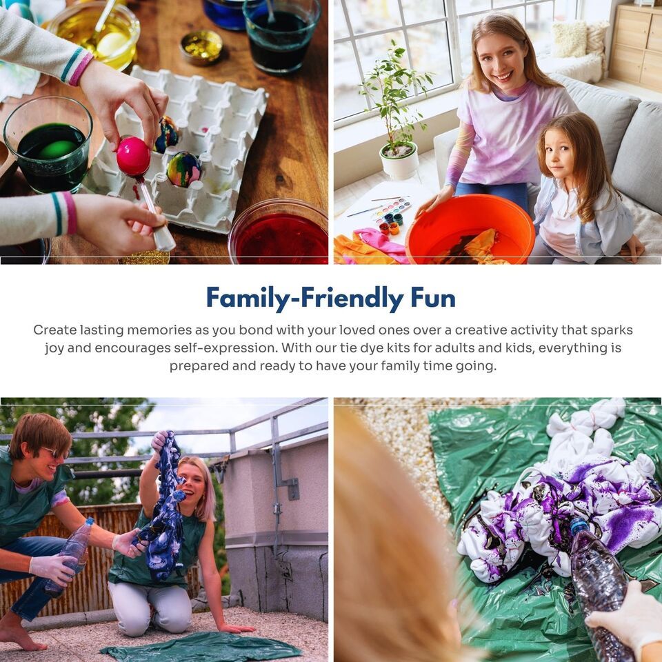 3. BOUNDLESS CREATIVITY FOR ALL AGES: Whether you're a seasoned artist or a budding enthusiast, our tie-dye kits cater to all ages, providing an exciting avenue for both adults and kids to explore their artistic talents and craft unique, one-of-a-kind designs.
