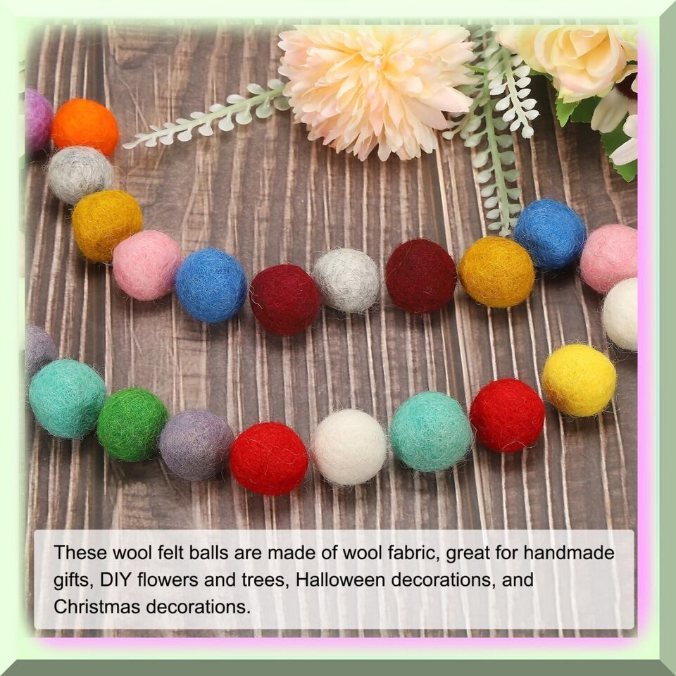 Discover the wonders of these enchanting wool felt balls! Crafted from luxurious wool fabric, they are perfect for creating unique handmade gifts, DIY flowers and trees, and stunning decorations. Each ball measures a delightful 15mm in diameter and comes in a pristine white color. With a package containing 200 of these marvelous balls, the possibilities for creativity are endless! These versatile felt balls are a breeze to handle and can be easily hung or even adorned onto your favorite knitted hat or sweater. Whether you're a needle enthusiast or simply enjoy crafting, these soft yet sturdy balls are ideal for bringing your small crafts and tiny trinkets to life. Embrace the ease of use as these felt balls effortlessly withstand gluing and hole-punching, allowing you to fully immerse yourself in the joy of felting projects. Please note that the size is measured manually, so kindly allow for a slight error of +/- 0.1 inch before making your purchase. -------- FEATURES:------- 1. Wool Felt Balls: Crafted from high-quality wool fabric, our wool felt balls are the epitome of elegance and charm. Each ball is meticulously handcrafted to perfection, ensuring a flawless finish that exudes sophistication.