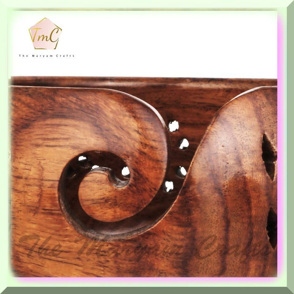 Indulge in the sophistication of our Personalized Rosewood Wooden Storage Yarn Bowl - a must-have for knitting and crochet enthusiasts. Meticulously crafted from high-grade rosewood, this bowl is a fusion of elegance and durability, promising a steadfast crafting companion. Key Features: Impeccable Rosewood Build: This yarn bowl is flawlessly fashioned from premium rosewood, showcasing both beauty and resilience, ensuring it endures the test of time. Smooth and Sleek Finish: The polished surface of the bowl guarantees your yarn glides effortlessly, preventing any snags or interruptions during your crafting sessions. Effortless Yarn Dispensing: A precisely carved spiral cutout ensures your yarn dispenses smoothly, keeping it tangle-free and easy to work with. Spacious Design: Revel in the convenience of a generously sized bowl that can hold a significant amount of yarn, reducing the need for constant refilling. Personalization Option: Make it uniquely yours by opting for a personalized engraving of your name or initials on the bowl, adding a special touch to your crafting experience. Multi-Purpose Utility: Beyond its primary function, this bowl doubles as an elegant decorative piece when not in use, elevating the ambiance of your crafting space. Versatility at Its Core: Whether you're into knitting or crocheting, this yarn bowl caters to both, keeping your yarn organized and your focus intact. Portability and Convenience: Designed for ease of use, it's lightweight and compact, making it effortless to carry and enabling crafting on the go. Elevate your crafting journey with our Personalized Rosewood Wooden Storage Yarn Bowl, an epitome of functionality, aesthetics, and personalization. Whether for yourself or a fellow crafting aficionado, this bowl adds a touch of charm to any creative workspace. ==== FEATURES: ===== A. Ample Capacity: Our yarn bowl boasts a bountiful size, providing an abundant space to house a copious amount of yarn. This generous capacity ensures that you can embark on projects demanding an extensive length of yarn without the vexation of incessant refilling.