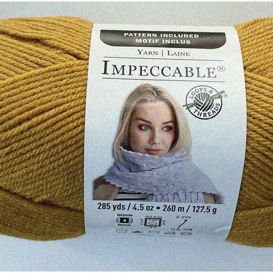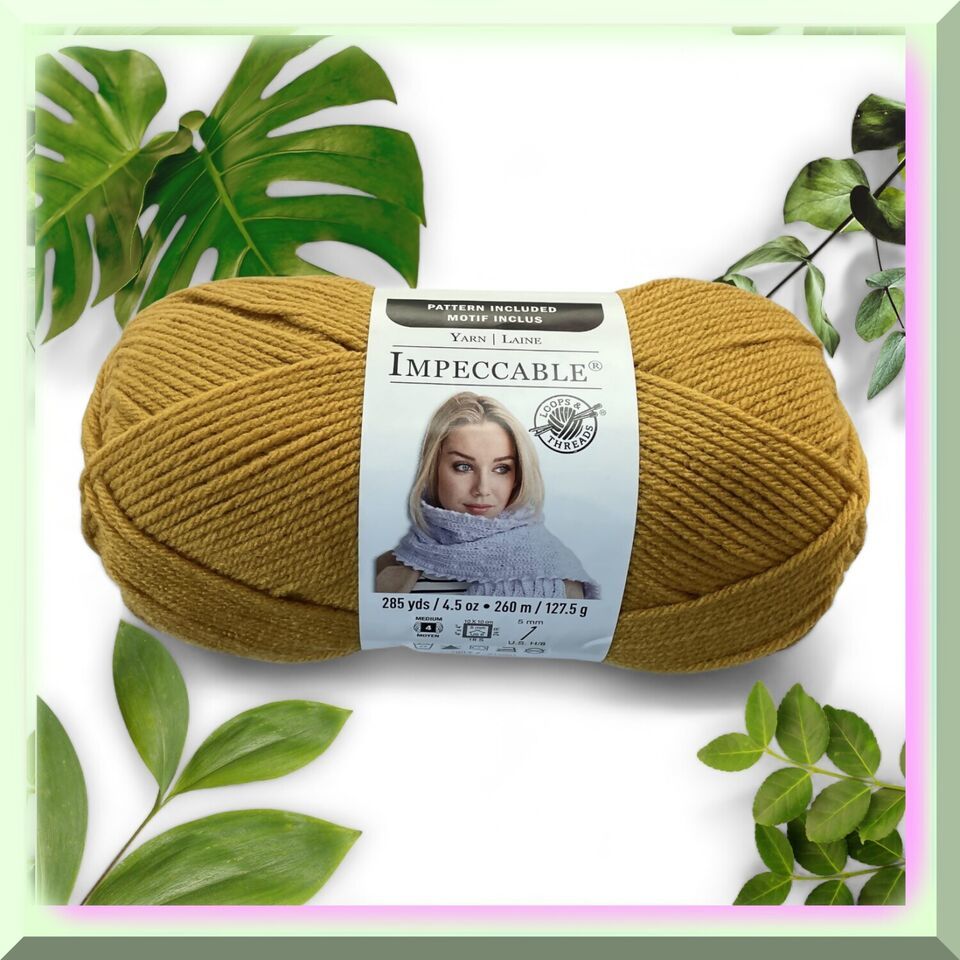 Introducing the resplendent Impeccable Yarn, adorned in a captivating shade of Gold. Each enchanting ball boasts a weight of 4.5 ounces, encompassing a generous 277 yards of luxurious yarn. Crafted from 100 percent acrylic, this yarn exudes both elegance and durability. With a medium worsted weight of 4, it effortlessly lends itself to a myriad of creative projects. Plus, its machine washable and dryable nature ensures convenience and ease. Unleash your artistic prowess with Impeccable Yarn, where opulence meets practicality. ==== FEATURES: ===== A) Aesthetic Appeal: The Thread Impeccable Yarn in Gold is a stunning addition to any crafting project. The rich, warm hue of the gold color adds a touch of luxury and elegance to any piece, making it perfect for creating high-end garments, accessories, and home decor items.