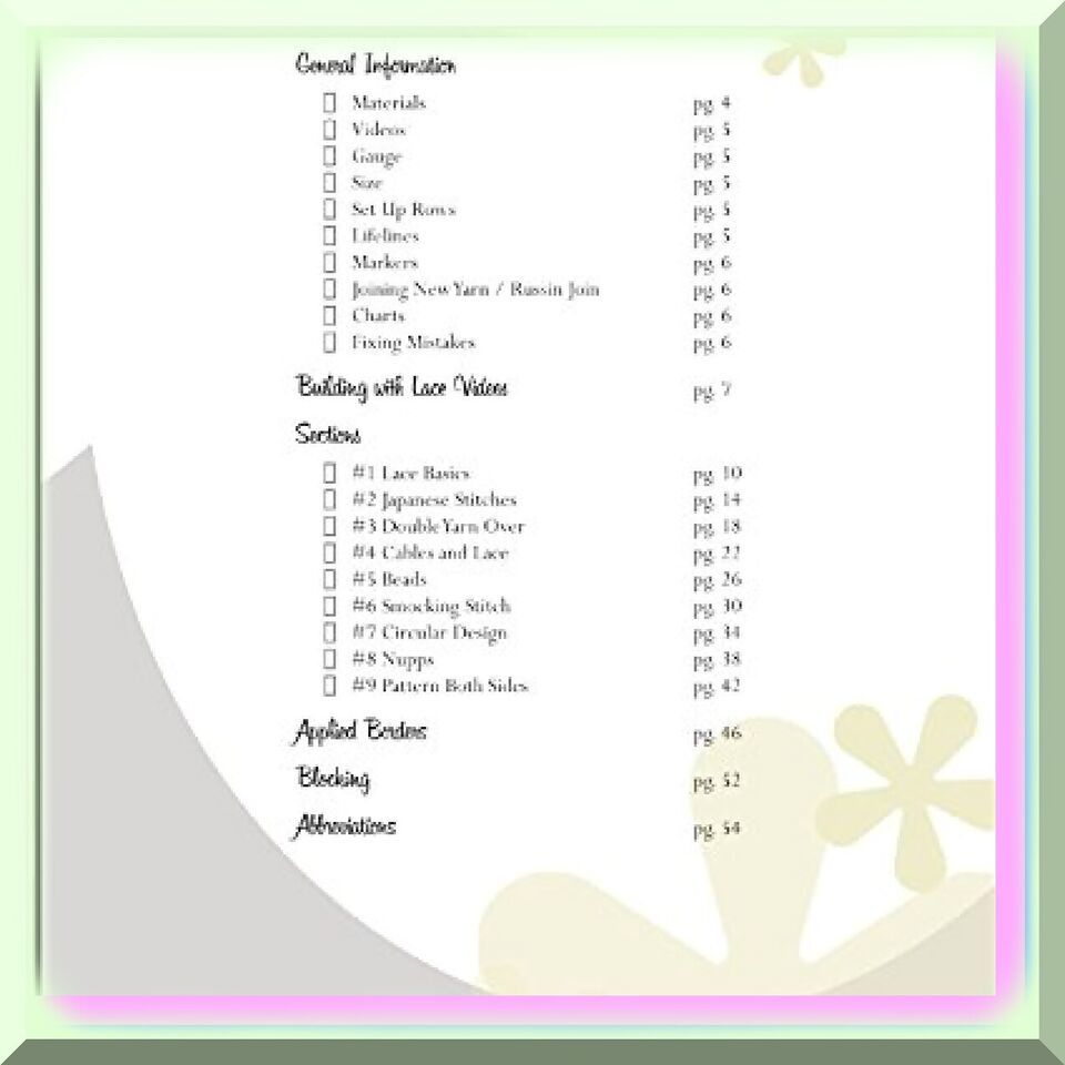 D) Delightful Inspiration: Building with Lace Book is not just a collection of patterns; it is a wellspring of inspiration. Michelle Hunter's innovative designs and imaginative use of lace will ignite your creative spark and encourage you to explore new possibilities in your knitting journey.