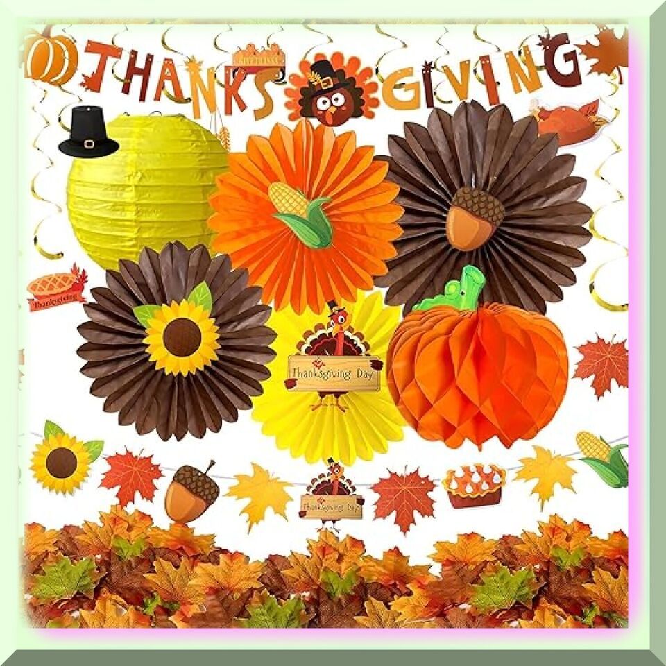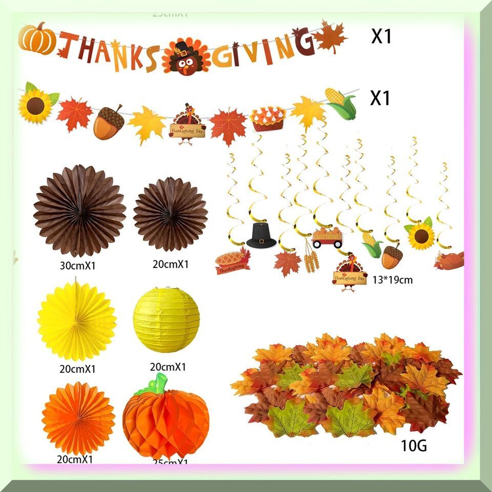 Unwrap the delightful NICE PACKAGE, a treasure trove of autumnal wonders! Inside, you'll discover a vibrant collection of 21 items, including 4 charming paper fans in shades of orange, yellow, and brown. Adorn your space with a radiant yellow paper lantern and a whimsical paper pumpkin pompom. Hang the festive card paper turkey banner and the enchanting card maple leaf banner, both strung with care. Let the air come alive with 12 captivating hanging swirls, each boasting a unique style. And don't forget the 60pcs of exquisite maple leaf accents, available in 3 delightful designs. Embrace the spirit of fall with this bountiful assortment!