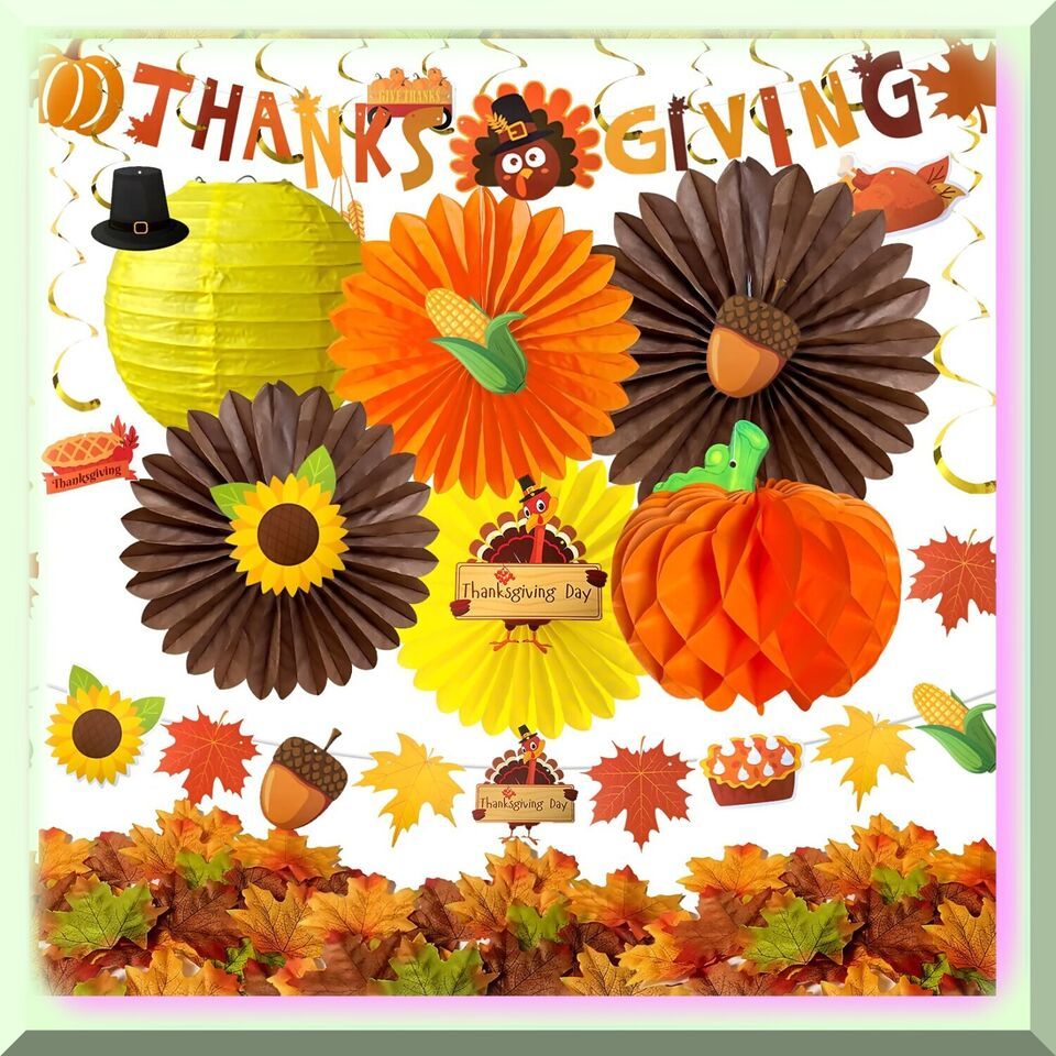 Autumn Harvest Fiesta Kit - Maple Leaves, Pumpkins, Sunflower Swirls, Paper Fans