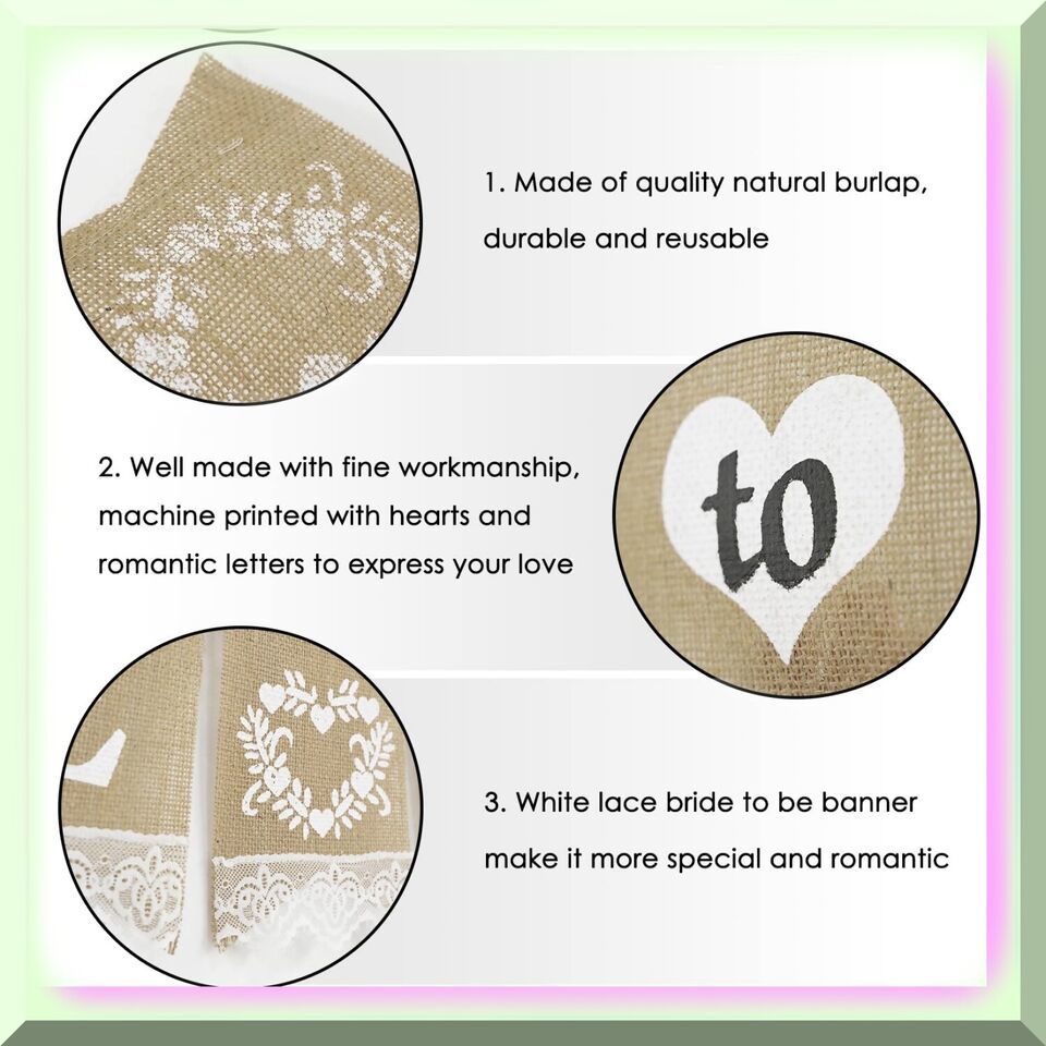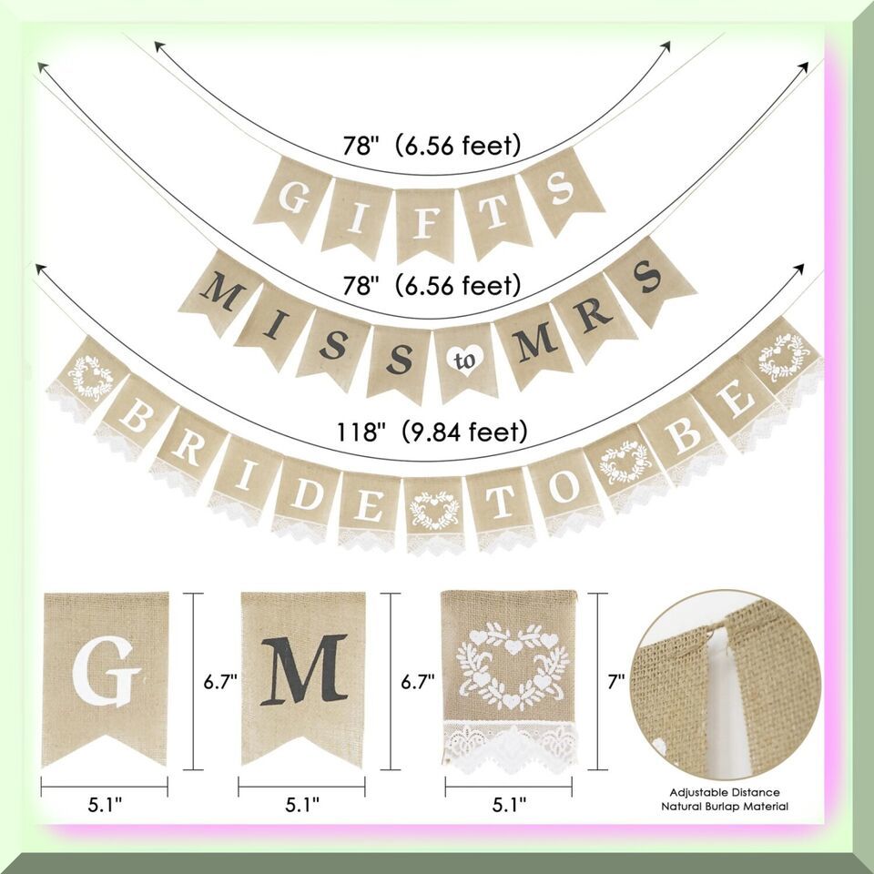 2. Breathtaking Burlap: Immerse yourself in the rustic charm of our Bridal Shower Banner Set, featuring three stunning pieces made from high-quality burlap. The natural texture and earthy tones of burlap create a warm and inviting atmosphere, perfectly complementing any bridal shower theme. Embrace the timeless beauty of this versatile material and let it effortlessly enhance the overall aesthetic of your event.