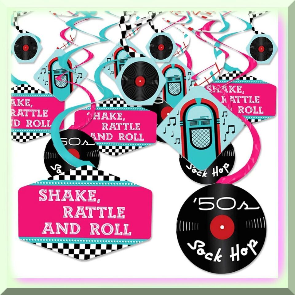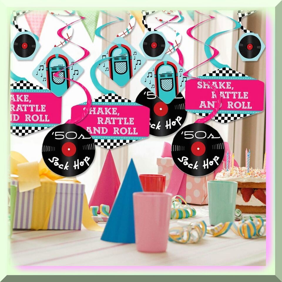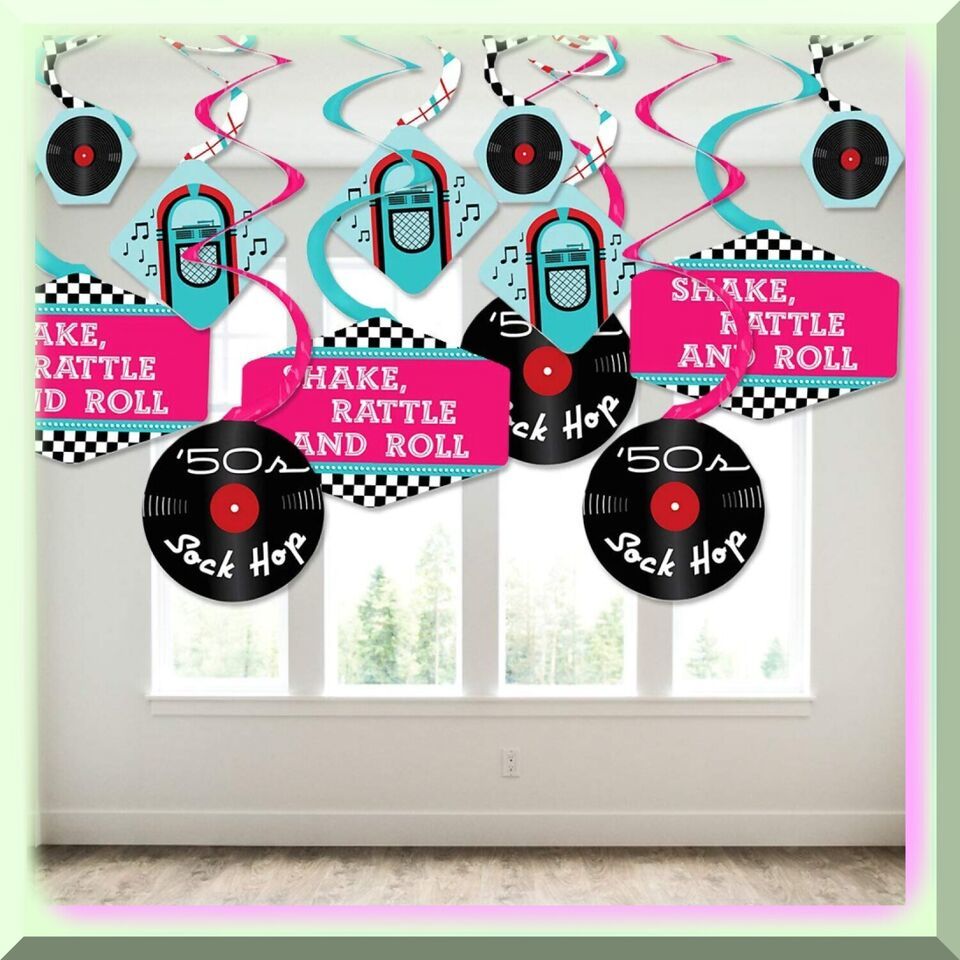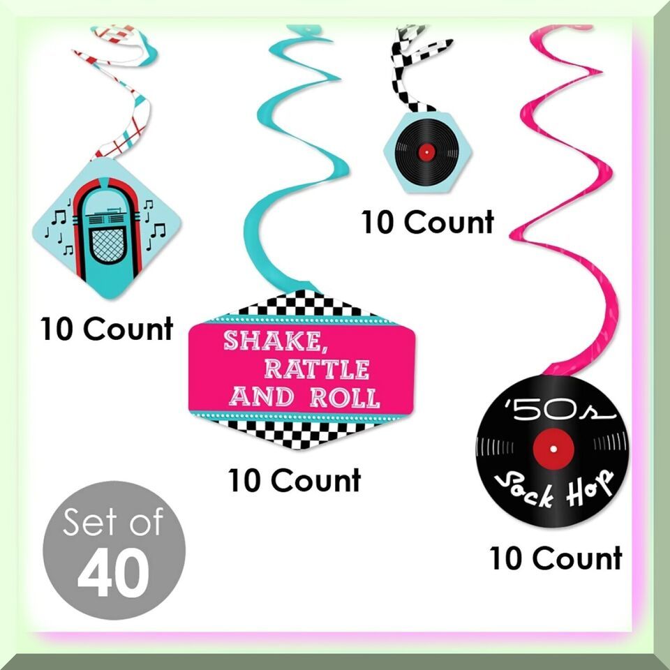 Rockin' Retro Swirls - 1950s Sock Hop Party Decor Set (40 Hanging Decorations)