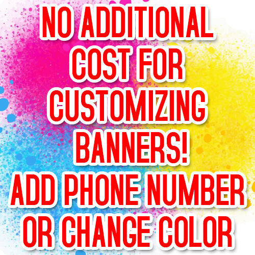 If you see a design and would like to make a slight change (ie adding a phone #, logo, or color change) just copy and paste this item number 192950848791 into's search field. This is our "Minor Changes to Pre-Made DESIGN" banner listing. Find and purchase the size banner you need. Once purchased message us your changes (see below).