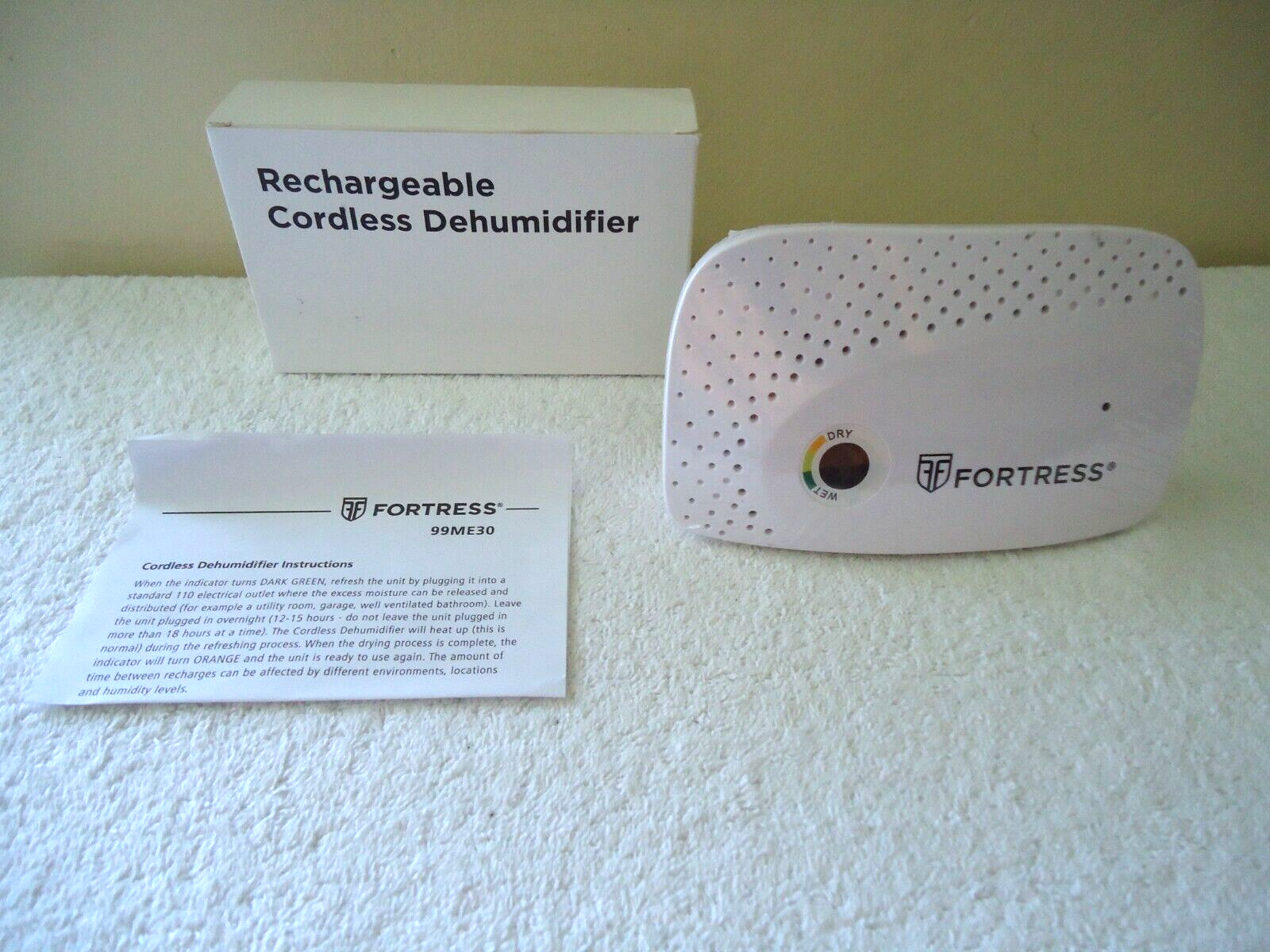 Here is a " NIB " Fortress 99ME30 Rechargeable Cordless Dehumididfier " Great Item ".This is a must for anyone who needs this.If you have any concerns or questions about this item(s) please ask before bidding / purchasing because this item(s) is being SOLD AS IS.Thank You.