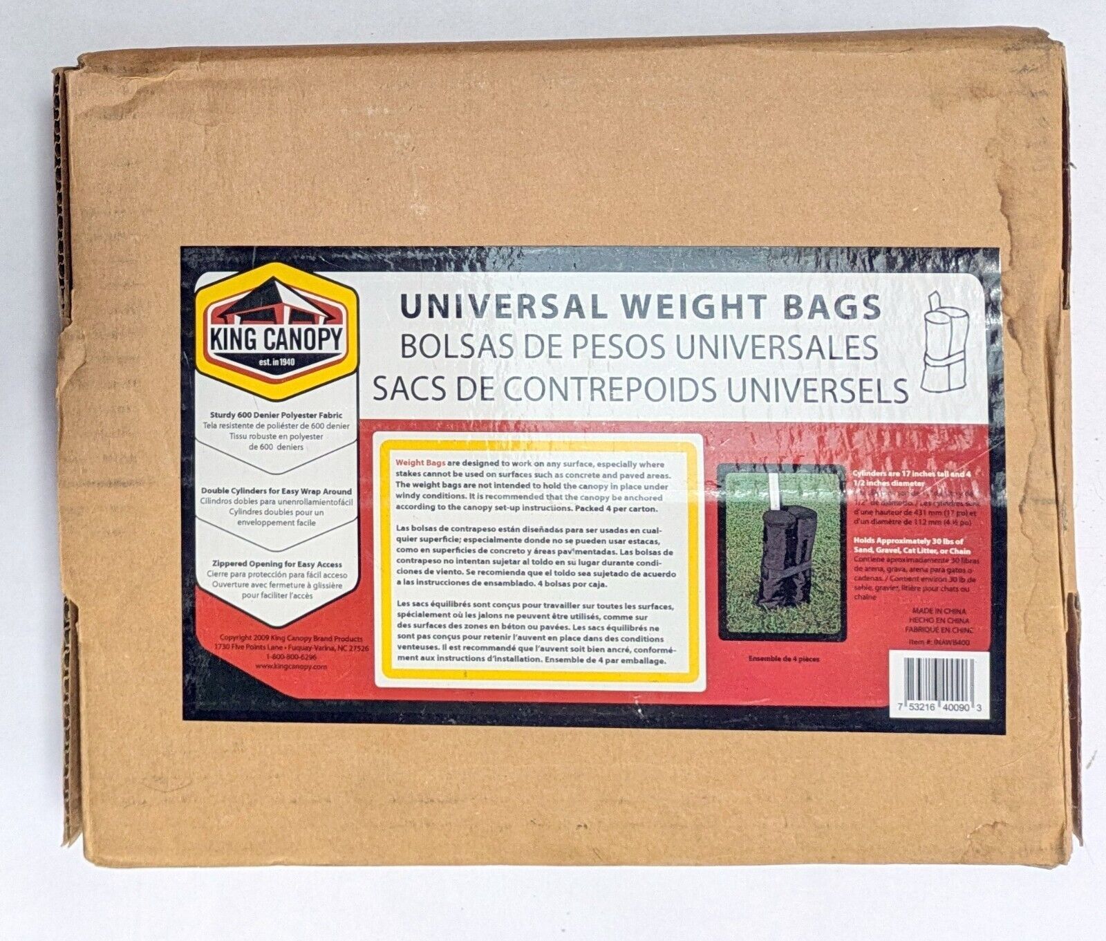 King Canopy Universal Weight Bags New in Open Box