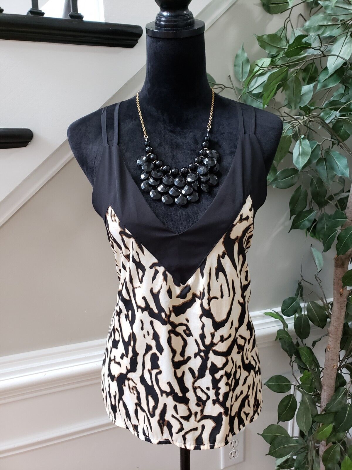 Boohoo Women's Black White 100% Polyester V-Neck Sleeveless Top Blouse Size 8