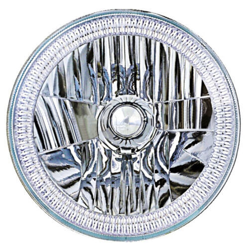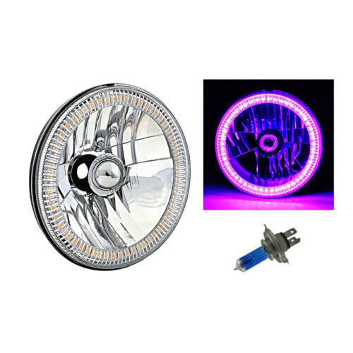 THIS LISTING IS FOR A NEW PAIR (2 bulbs) OF 7" 12 VOLT HIGH/LOW BEAM HALOGEN HEADLIGHTS WITH PURPLE SMD 45-LED HALO ANGEL EYE RINGS. THESE HALO RINGS ARE EXTREMELY BRIGHT AND CAN EASILY BE SEEN DURING THE DAY AND NIGHT EVEN WITH THE HEADLIGHT ON. THESE HEADLIGHTS HAVE GLASS LENSES. THESE LIGHT UP 50% BRIGHTER AND WHITER COMPARED TO THE STANDARD STOCK STYLE INCANDESCENT HEADLIGHT BULBS. INCLUDES HALOGEN 60/55W H4 SUPER WHITE LIGHT BULBS AND H4 TO H13 ADAPTER WIRING PLUGS. THESE HAVE THE ORIGINAL 3 PRONG PLUG DESIGN ON THE BACK SO THEY WILL PLUG RIGHT INTO THE ORIGINAL WIRING HARNESS. LED RING IS POWERED WITH A POWER AND GROUND WIRE THAT CAN BE SPLICED DIRECTLY TO THE CARS 12V ELECTRICAL SYSTEM. HALO RINGS CAN BE CONNECTED TO PARKING LIGHTS, TURN SIGNALS, HEADLIGHTS, OR A SEPARATE SWITCH.