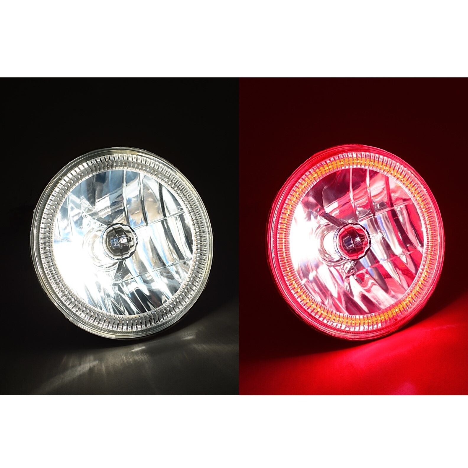 THESE ARE 7" ROUND 6K 55/60W HALOGEN HEADLIGHTS WITH COB LED RED HALO RINGS!