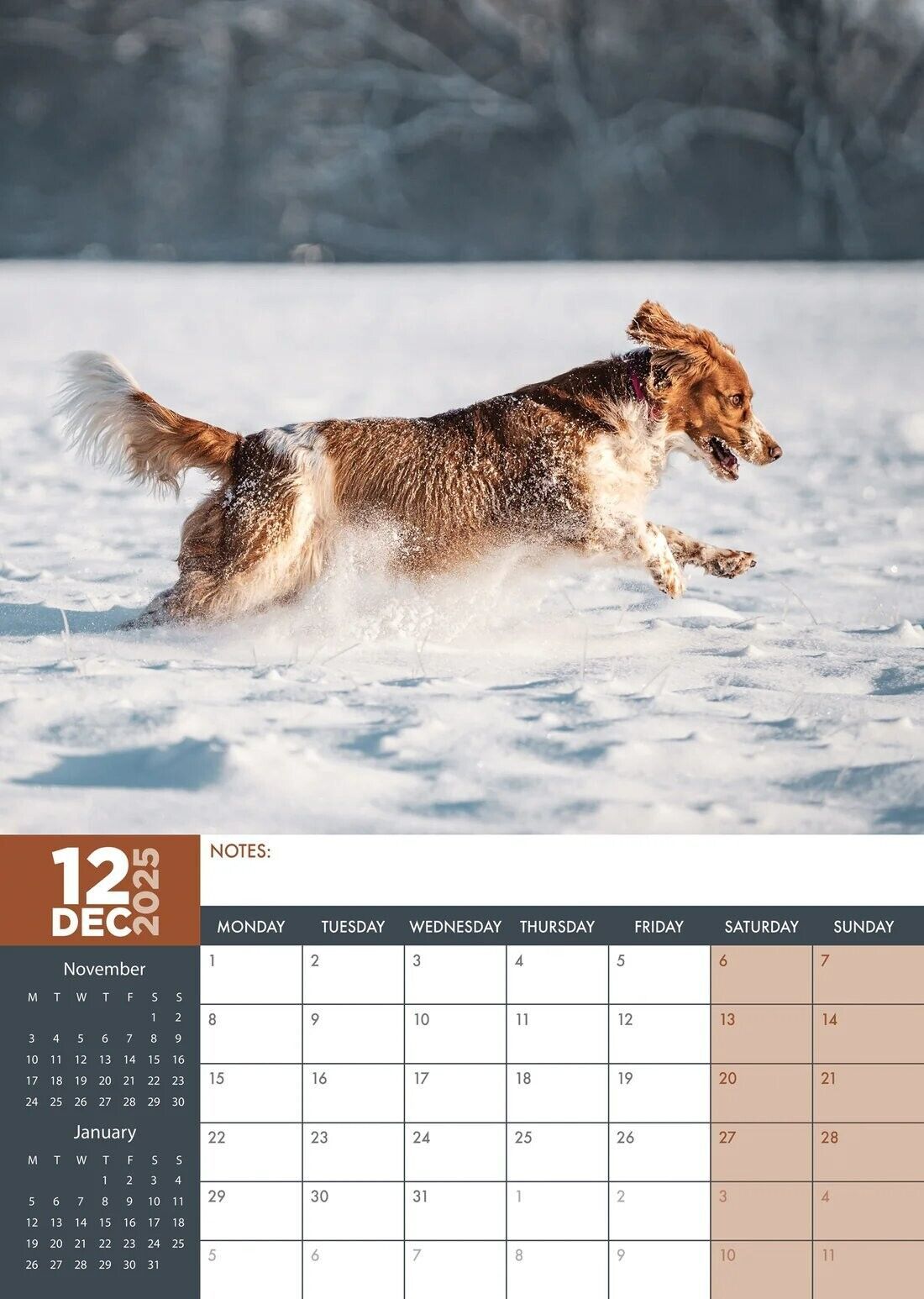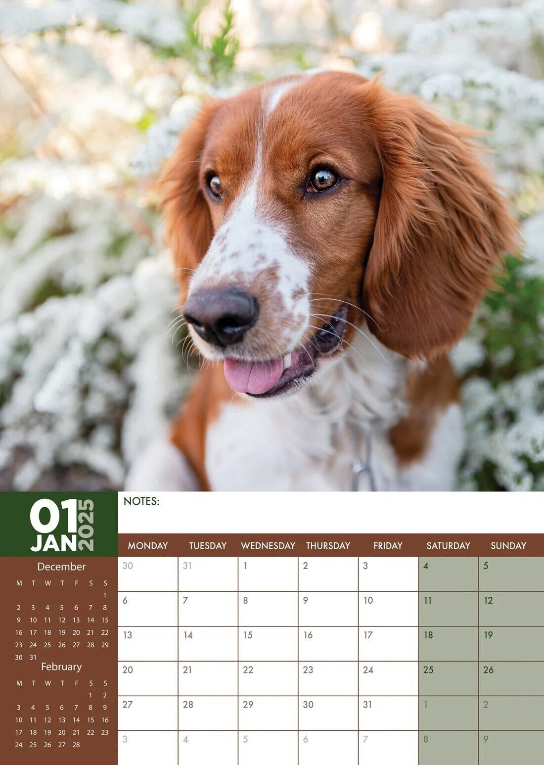 Springer Spaniel Dog A3 Calendar 2025 - Month To View - Travel