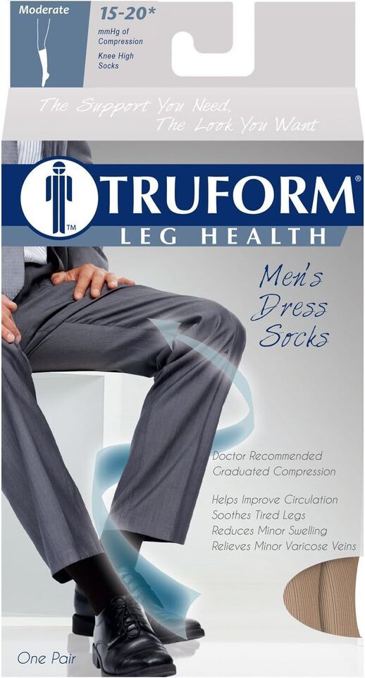 Truform 1943; Men's trouser style support socks; 15-20 moderate strength graduated compression