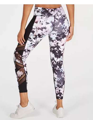 Ideology Printed Mesh-Trimmed Ankle Leggings, Size XL