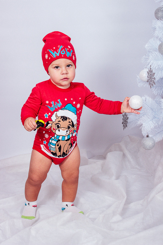 Set for boys: bodysuit and hat - the perfect choice for comfortable and stylish everyday wear. The bodysuit is made of soft, breathable fabric, providing maximum comfort for your baby. Convenient snaps make diaper changes easy. The soft hat protects from the cold and completes the look. This set is suitable for both walks and sleep, ensuring warmth and coziness for your child.