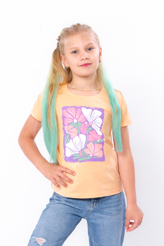 T-Shirt (Girls), Summer, Nosi svoe 6012-036-33-5 (pomaranchevo-persykovyj-kv...