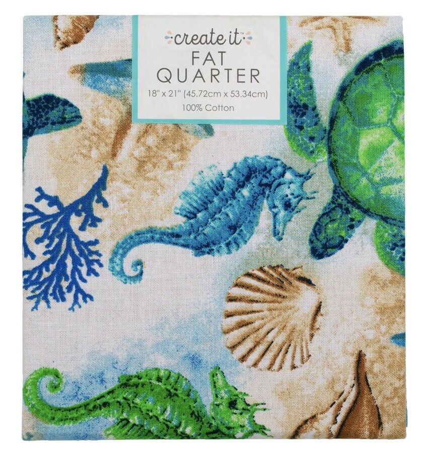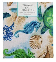 Create It Pre-Cut Cotton Fabric, Turtles Multi-Blue, Fat Quarter, 18" X 21", Turtle, Ocean, Seaweed, Seahorse, Water, Seashell, Starfish