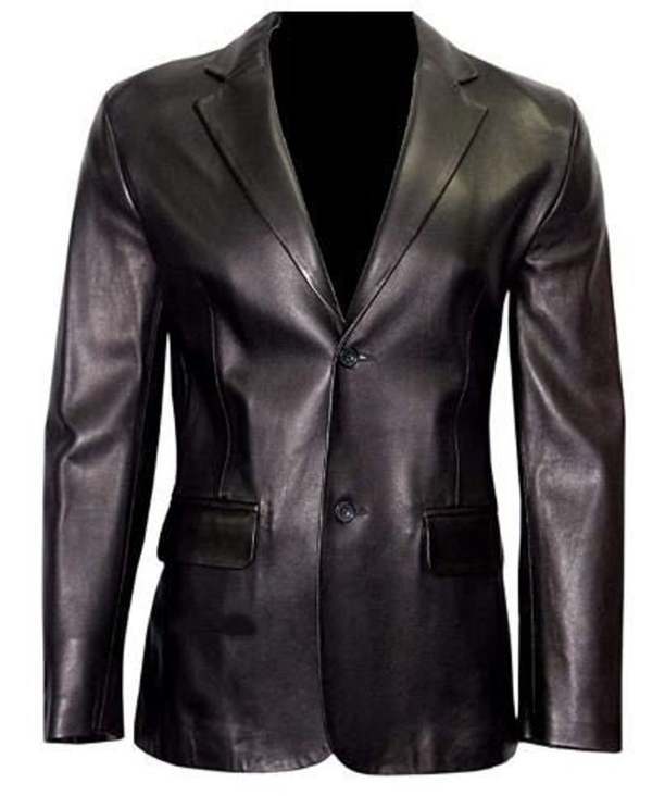 Men's Black Formal Coat Twp Button Blazar Regular Big & Tall Faux Leather with 1