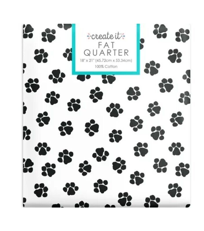 Create It Animal Paws Fat Quarter, 18 x 21 inches, White With Black Paws