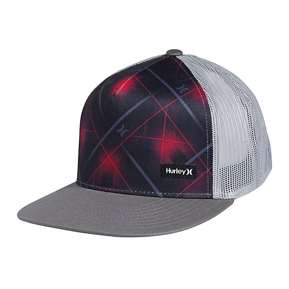 MEN'S GUYS HURLEY RED LASER POINTER TRUCKER GRAY BASEBALL CAP HAT NEW $30