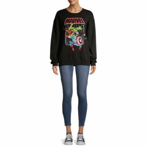 Licensed Graphics Juniors Leaping Avengers Pullover Sweatshirt Black Size XXL 19