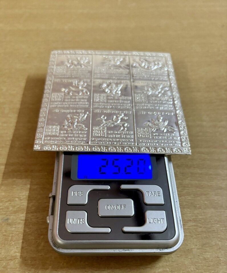 Argento 999 indù religioso Shri Navgrah Shanti Yantra Yantra Yantram 25 gm,...